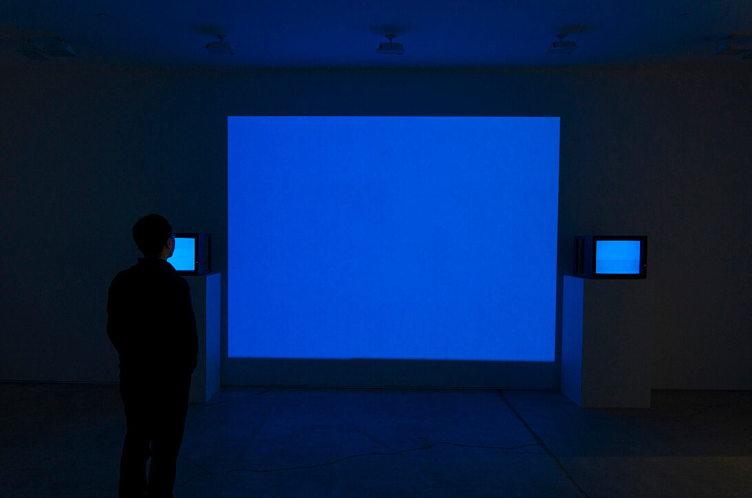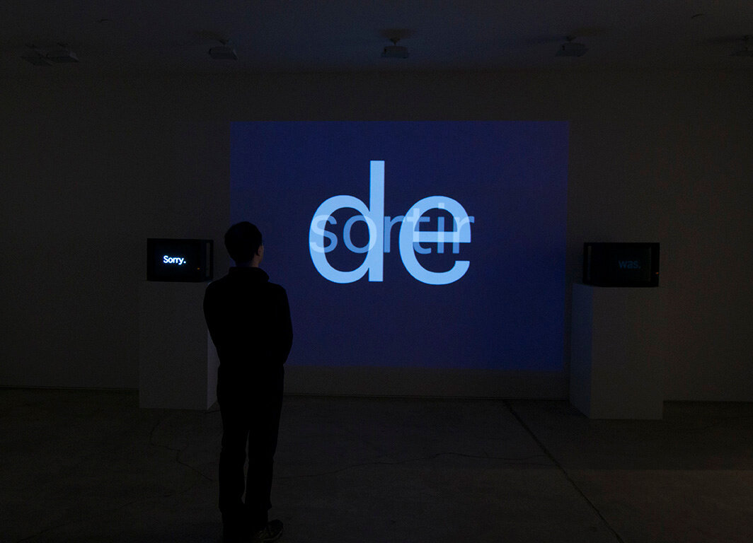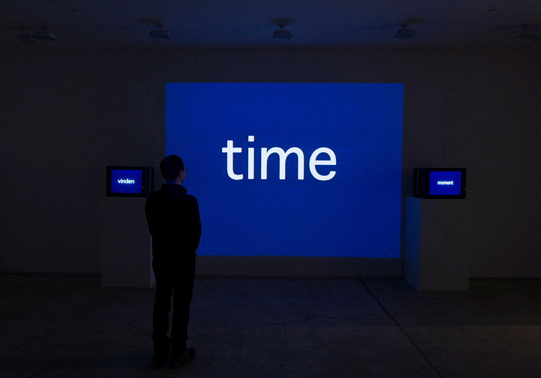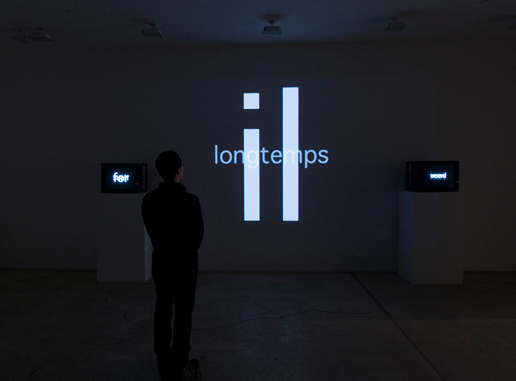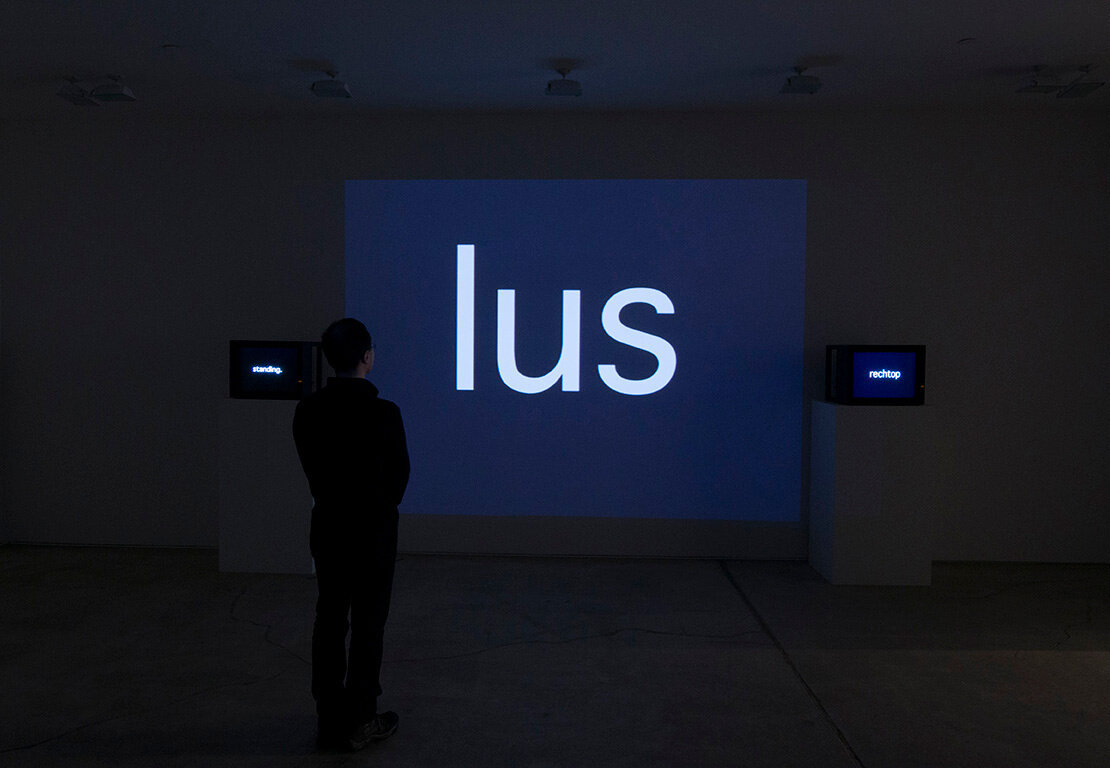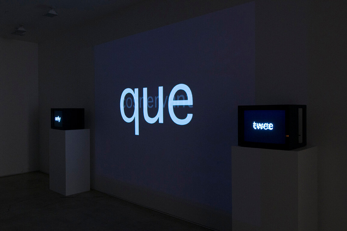 On the occasion of the exhibition, That/Cela/Dat, 2000 will be on view for the first time in New York. Humor and language are key tenants in Snow’s oeuvre, and this playful video installation considers how words like “this” or “that” point to something outside of language to convey meaning. A projection and two monitors on either side display the same text, one word after another, in English with simultaneous French and Dutch equivalents. The three languages shift position at 17 minute intervals. Cumulatively, the text directly addresses the viewer and raises self-consciousness through witty turns of phrase. The work literally comments on the experience of viewing the work itself, and leaves the viewer to consider if a work of art continues to exist long after its beholder has left. The disembodied narration in the video implores, “ If you turn your back on this, it will still be here. When you are looking at other things, it will still be here, hoping that you will come back to it. When you are away from this, in your memory, it will become that.”