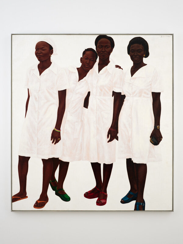 While the directness of his subjects’ gaze could be piercing, Hendricks invoked humor through the titling of his pieces, mitigating the gravity of the message and allowing for an opening into the work. His paintings are distinctly of their time, grounded in the style of their contemporary present, and simultaneously emphatically timeless. They are a direct engagement with art history, the tradition of portraiture, and a confrontation of institutional portrayal of the black subject.