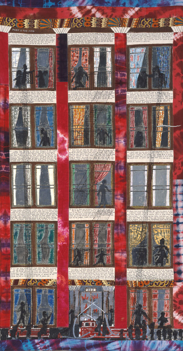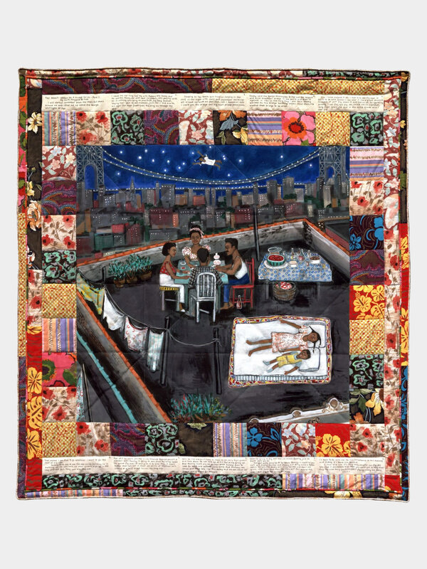 In addition to her art and activism, Ringgold was also a dedicated teacher, first in the New York City public schools system throughout the 1970s and 1980s before moving to the University of California, San Diego, in 1987, where she remained until retiring in 2002. Ringgold was also a successful author of children’s books, often citing the formative influence of her years teaching young students. Her first children’s book, the award-winning Tar Beach, was published in 1991 by Crown. Based on the story quilt of the same name from the 1988 Woman on a Bridge series, the book has gone on to win more than 20 awards, including the Caldecott Honor and the Coretta Scott King Award for the best-illustrated children’s book of the year.