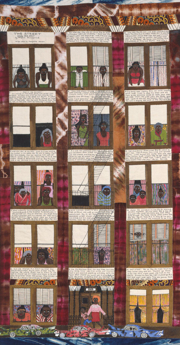 Ringgold is included in numerous public collections, including the Brooklyn Museum, New York; Crystal Bridges Museum of American Art, Bentonville, AR; High Museum of Art, Atlanta; The Metropolitan Museum of Art, New York; Museum of Modern Art, New York; National Gallery, Washington, DC; National Museum of Women in the Arts, Washington, DC; National Museum of African American History and Culture, Washington, DC; Neuberger Museum of Art, New York; Philadelphia Museum of Art; Public Art for Public Schools, New York; Schomburg Center for Research in Black Culture, New York; Smithsonian American Art Museum, Washington, DC; Solomon R. Guggenheim Museum, New York; St. Louis Art Museum, Missouri; Studio Museum, Harlem, New York and The High Museum, Atlanta.