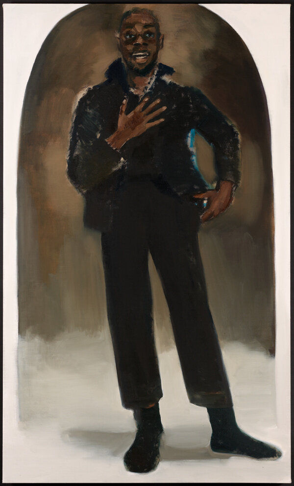 Lynette Yiadom-Boakye is an artist who creates fictional figures that are untethered to a specific time or place, and are born from various untraceable subjects: people, objects, thoughts, photographs, or images she has drawn, observed, or recalled. This lack of fixed narrative reference leaves her work open to the projected imagination of the viewer. Her paintings are rooted in traditional formal considerations such as line, color, and scale, and can be self-reflexive about the medium itself, but the subjects and the way in which the paint is handled is decidedly contemporary. When describing her painting and writing, Yiadom-Boakye derives each practice from the language of poetry—a fiction imbued with reality and truth. Merging the visual and textual, her titles function as another mark beside the painting that, like her figures, need not describe, explain, or justify.