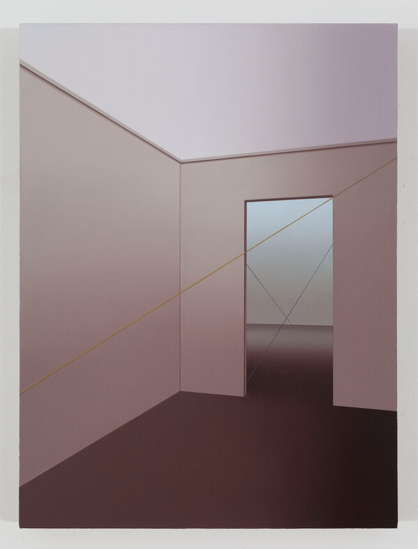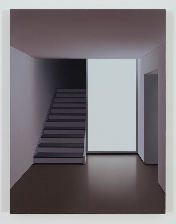 In a 2012 retrospective at the Musee d’art contemporain de Montréal (MACM) his work was described by the curator Mark Lanctôt: “From the very beginning of his career, Pierre Dorion has had a strong interest in art history, and he attracted early critical attention with installation work that took an analytical look at the styles and subject matter of classical painting. Then, after producing a series of large-scale self-portraits in the 1990s, his gaze turned to architectural and other manufactured spaces, and gradually he developed a more graphic style of working that resulted in his paintings becoming increasingly spare, ultimately achieving a kind of figurative Minimalism. Unmediated by inflection and painterly gesture, Dorion’s depiction of the specific locations selected and framed in his initial photographs confound the viewer’s sense of scale and perspective. Through his careful use of close detail and flat viewpoints, the walls, corners, and features (such as doors, windows, ledges) of his ‘scenes’ become pure fields of line, color, and shading: the formal elements of Abstraction.”