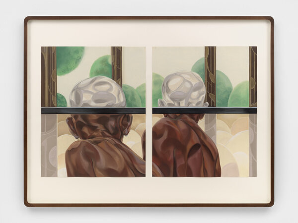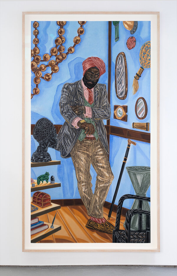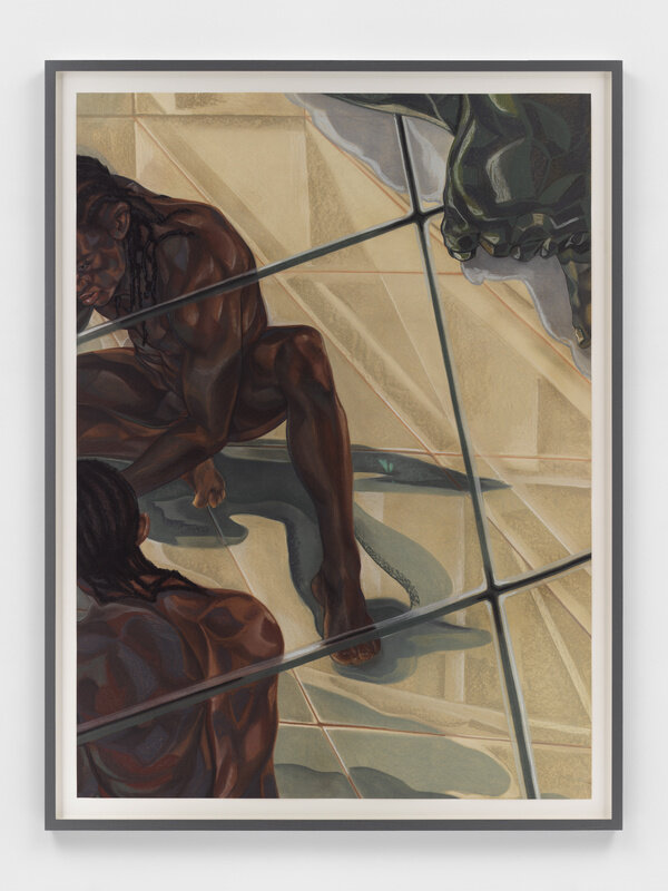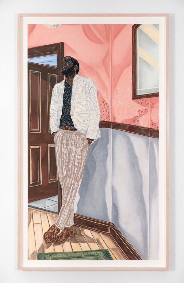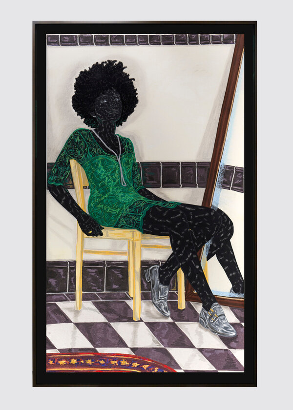 Her work is inspired by both art history and popular culture, as well as her own personal history—being born in Nigeria then moving as a child to America where she was raised in conservative Alabama. The idea of traveling or transporting the self is a recurring theme in her work and, for Ojih Odutola, the construction of her figures is a means of discovering an individual’s character and personal story. Though the representation of skin has been a core focus of her practice, she has also explored depictions of landscapes, architecture and domestic interiors in more recent series.