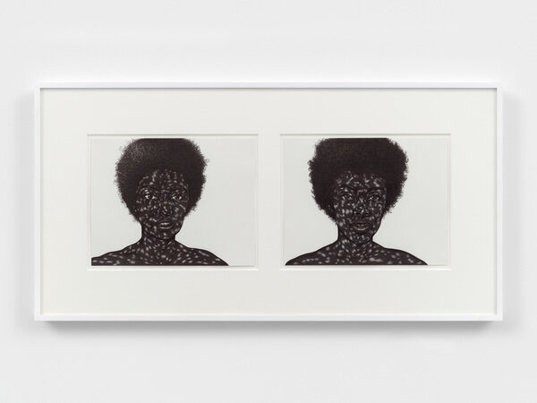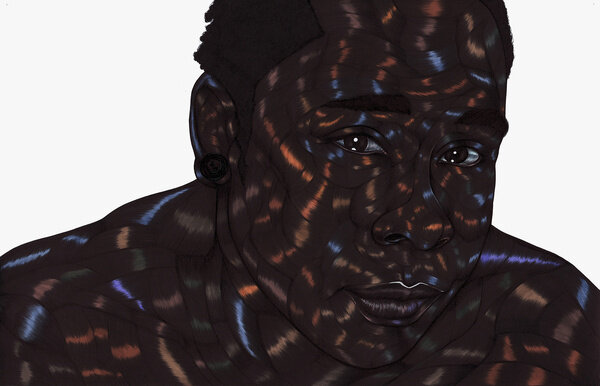 Toyin Ojih Odutola (b.1985 in Ile-Ife, Nigeria; lives and works in New York, NY) is best known for her multimedia drawings and works on paper, which explore the malleability of identity and the possibilities in visual story-telling. Interested in the topography of skin, Ojih Odutola has a distinctive style of mark-making using only basic drawing materials, such as ballpoint pens, pencils, pastels and charcoal. This signature technique involves building up of layers on the page, through blending and shading with the highest level of detail, creating compositions that reinvent and reinterpret the traditions of portraiture. Ojih Odutola credits the development of her style from using pen, which holds a special significance through its function as a writing tool, as her work is also akin to fiction. She often spends months crafting narratives that unfold through series of artworks like the chapters of a book.