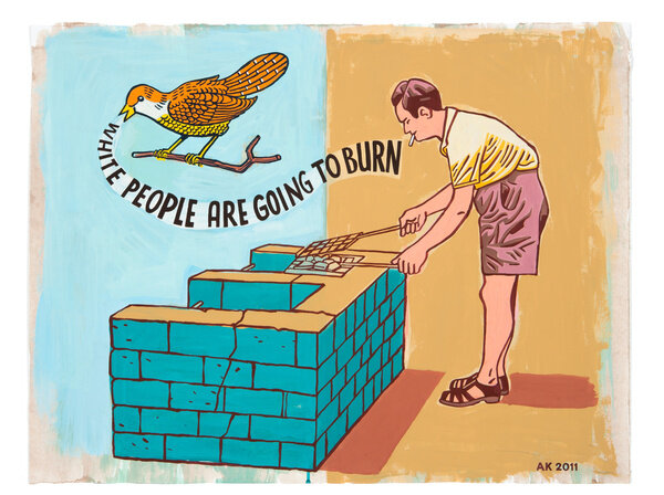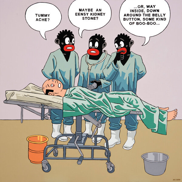 Jean-Paul Sartre once argued “the status of ‘native’ is a nervous condition introduced and maintained by the settler among colonized people with their consent.” In his most recent body of work, Anton Kannemeyer shows us the condition of “post-colonial” Africa as seen through the eyes of a Euro-African who has no other home.
