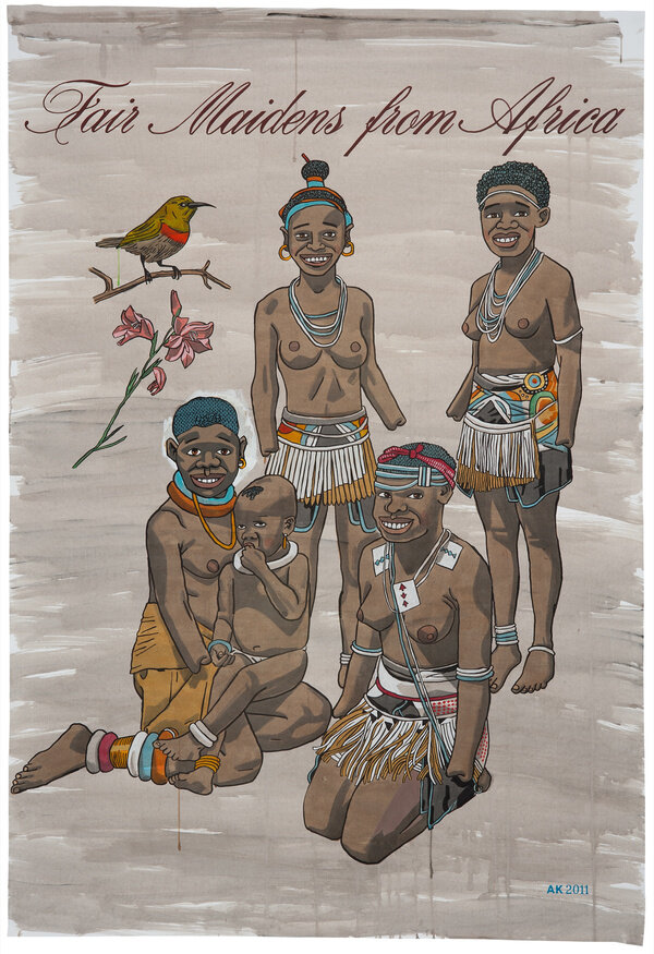 Kannemeyer has, however, broadened his satirical scope significantly in recent years. After meticulously drawing the anatomy of white fear and loathing, he started wrestling with the social issues plaguing his own country and the continent as a whole. His latest work urges one to look again at imperialism and the racial and cultural identity that has become synonymous with post-apartheid South Africa.