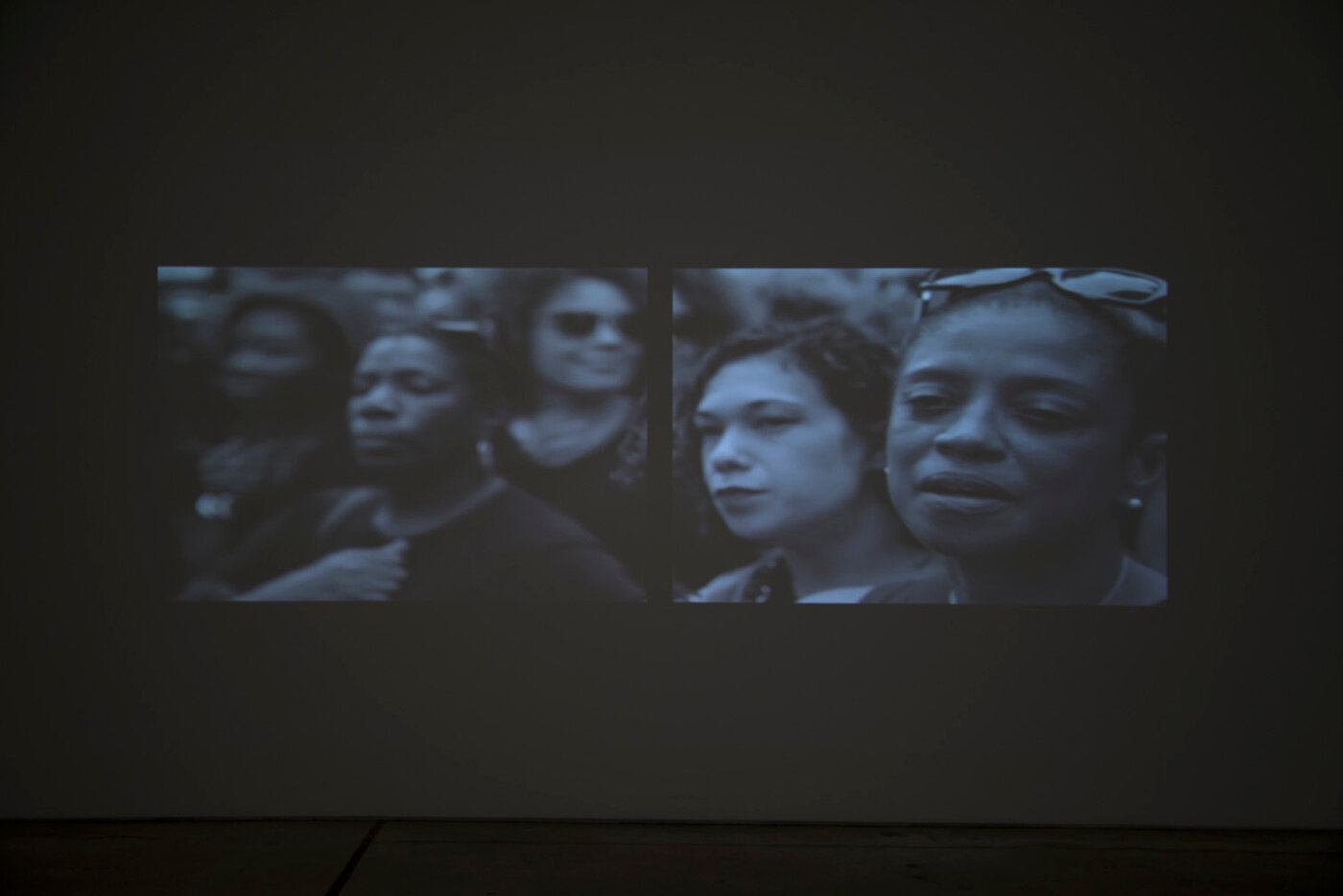 Blue Notes (2014) highlights figures on the periphery, bringing them front and center. The photographic series is paired with the enigmatic video installation Lincoln, Lonnie, and Me (2012), originally commissioned by the Mattress Factory, Pittsburgh, PA. The work rests on a 19th century optical trick, “Pepper’s ghost,” in which a strategically lit pane of glass reflects people and objects as dematerialized versions on stage. Weems employs this phantasmagoria to examine her own relationship to history and two individuals in particular: the 16th president of the United States and artist/activist Lonnie Graham, her sometime collaborator. Here history becomes theater, a succession of ghostly projections that draw us in to the strange ways in which representation seduces and manipulates, and how some are left out of history altogether, their apparitions left to haunt the expanses of Western culture.