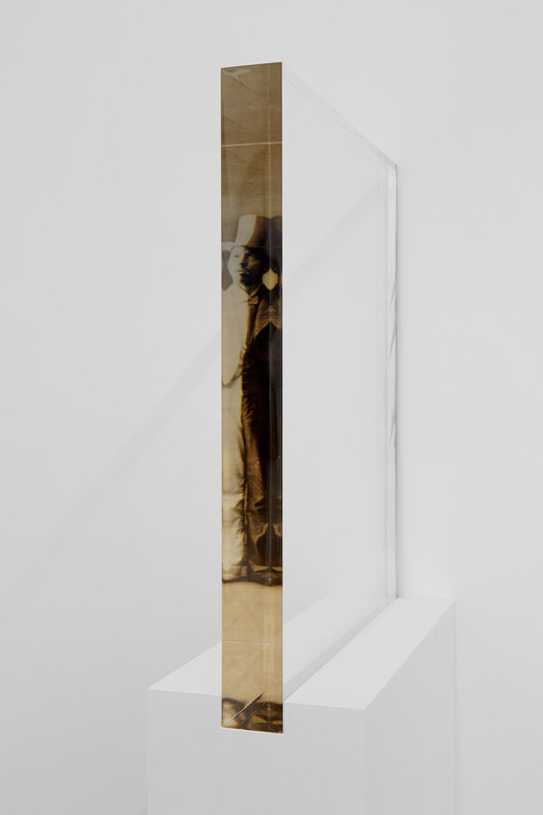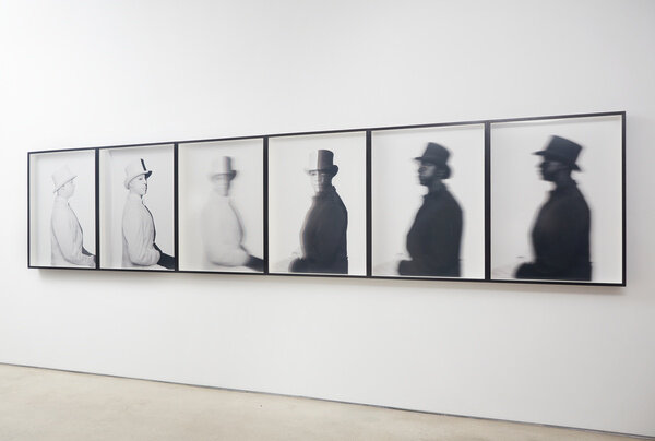 Jack Shainman Gallery is pleased to announce the collaborative project Question Bridge: Black Males and a selection of works by Hank Willis Thomas that will include Zero Hour from the Wayfarer series and new sculptural pieces that employ photographs, clothing, wood and plexiglass to explore complex narratives about race, history and visual culture.Question Bridge: Black Males is a project that explores critical and challenging issues within the African American male community by instigating a transmedia conversation among black men from a range of geographic,economic,generational, educational and social strata. The innovative video installation begins a dialogue that is continued through special community events across the country, a curriculum offered to high schools, a website and social media engagement. Question Bridge aims to provide a forum for necessary, honest expression and healing dialogue on themes that divide, unite and puzzle Black males today in the United States. Questions and separately filmed answers are then interwoven to create a stream-of-consciousness “megalogue” around issues such as family, love, interracial relationships, community, education, violence and the past and future of Black men in American society. From these exchanges emerge surprising insights and new possibilities for witnessing our common humanity.Question Bridge: Black Males is a portal to an inner realm of Black male consciousness. This five-channel video installation presents an intimate exchange between over 150 Black men from 12 different cities in America. These diverse, everyday individuals ask and answer questions that are political, humorous, painful and poignant. The installation is designed to invite visitors into a space where they can experience an intimate exchange between the subjects of the project. Question Bridge creates a platform for participants to represent and redefine black male identity in America.Question Bridge: Black Males was created by Chris Johnson, Hank Willis Thomas, Bayeté Ross Smith and Kamal Sinclair. The Executive Producers are Delroy Lindo, Deborah Willis and Jesse Williams. It is a fiscally sponsored project of the Bay Area Video Coalition (a 501c3 not-for-profit organization) and supported in part by a grant from the Open Society Institute: Campaign for Black Male Achievement, The California Endowment, The Tribeca Film Institute, The LEF Foundation, The Center for Cultural Innovation and the California College of the Arts. The project was supported by the Sundance Institute’s New Frontier Story Lab.