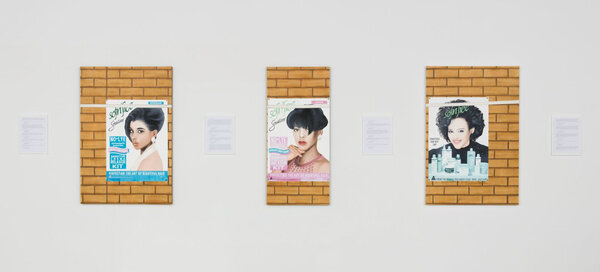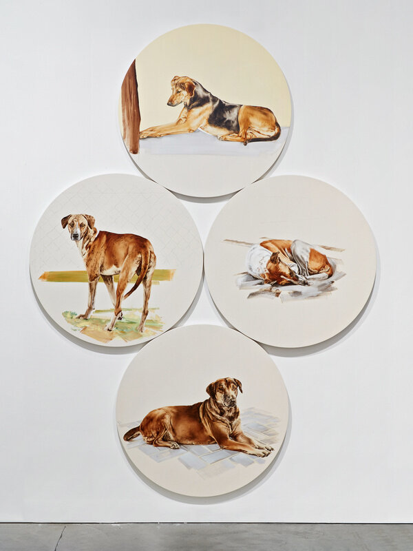 Comprised of three multi-panel installations, Lex (2017) derives its title from the legal concept of lex loci actus, or the law of the place where an alleged act occurred. The paintings reflect on how the rules of a community, specifically those regarding labor and gender, govern individual autonomy and behavior. An earlier chapter, Exordium (2015), considers the ways access to civic knowledge shape a subject’s claim to democracy and ability to function within the state apparatus, particularly given the realities of labor and education.
