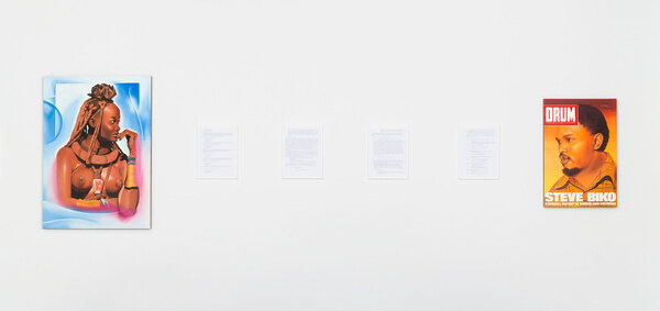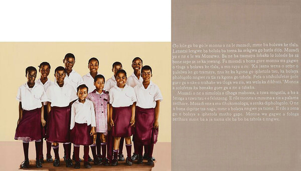 In addition to his choice of imagery, a reconsideration of the technique of painting itself is central to Mokgosi’s work. In choosing a highly realistic style, he points to pre-photographic celebrations of painting that equated mastery with an ability to convincingly portray the world, as well as to the twentieth century’s adoption of realism for political propaganda and advertising. In some panels, passages of striking realism are surrounded by seemingly unfinished areas where the canvas was primed with clear gesso. Beyond calling attention to the fact that these images were not generated from a literal or symbolic white background, these glimpses of beige canvas disrupt any sense of illusionism and acknowledge the limits of all pictures in fully representing our world and ourselves.