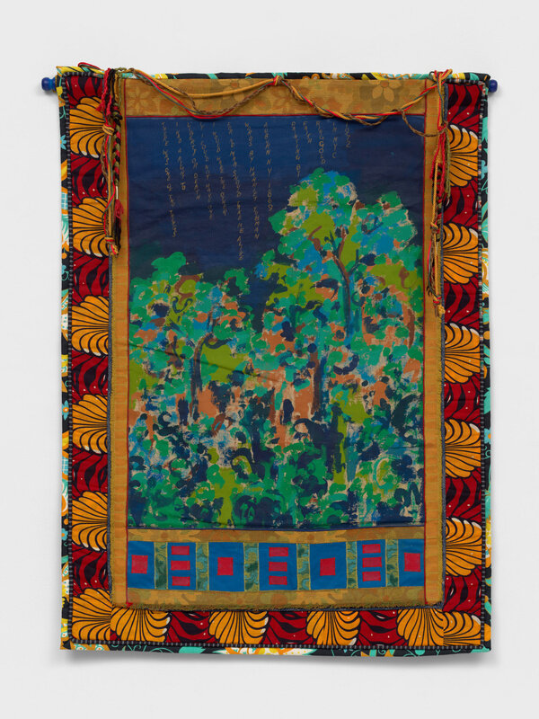 Ringgold’s experimentation with textiles began with what she referred to as ‘tankas.’ Inspired by the religious and spiritually significant Tibetan thangkas she first encountered when visiting the Rijksmuseum in Amsterdam, Ringgold’s version manifested as paintings on unstretched canvas adorned with sewn fabric borders. It was the potential of these objects to explore the intersection of the craft and fashion traditions she inherited from her family with the history and techniques of European painting that inspired Ringgold and formally initiated her investigation into the medium that would become an integral part of her practice. They additionally provided the flexibility to make art that could be easily transported around the world for exhibition, allowing her to circumvent some of the many practical and economic barriers regularly faced by women artists of her time.