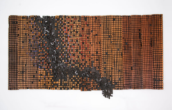 Jack Shainman Gallery is pleased to celebrate the first anniversary of The School with a solo exhibition of work by El Anatsui, who was just awarded the Golden Lion for Lifetime Achievement, the Venice Biennale’s highest honor. Five Decades is a comprehensive survey spanning the last fifty years of Anatsui’s celebrated career, from compositions in painting, wood, and clay, to the magnificent metal works for which he is renowned.