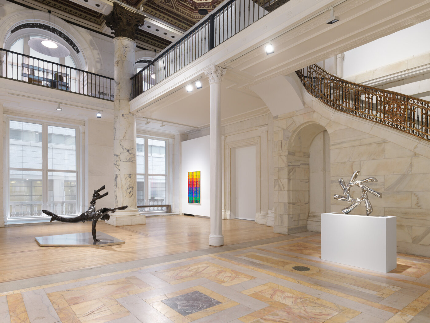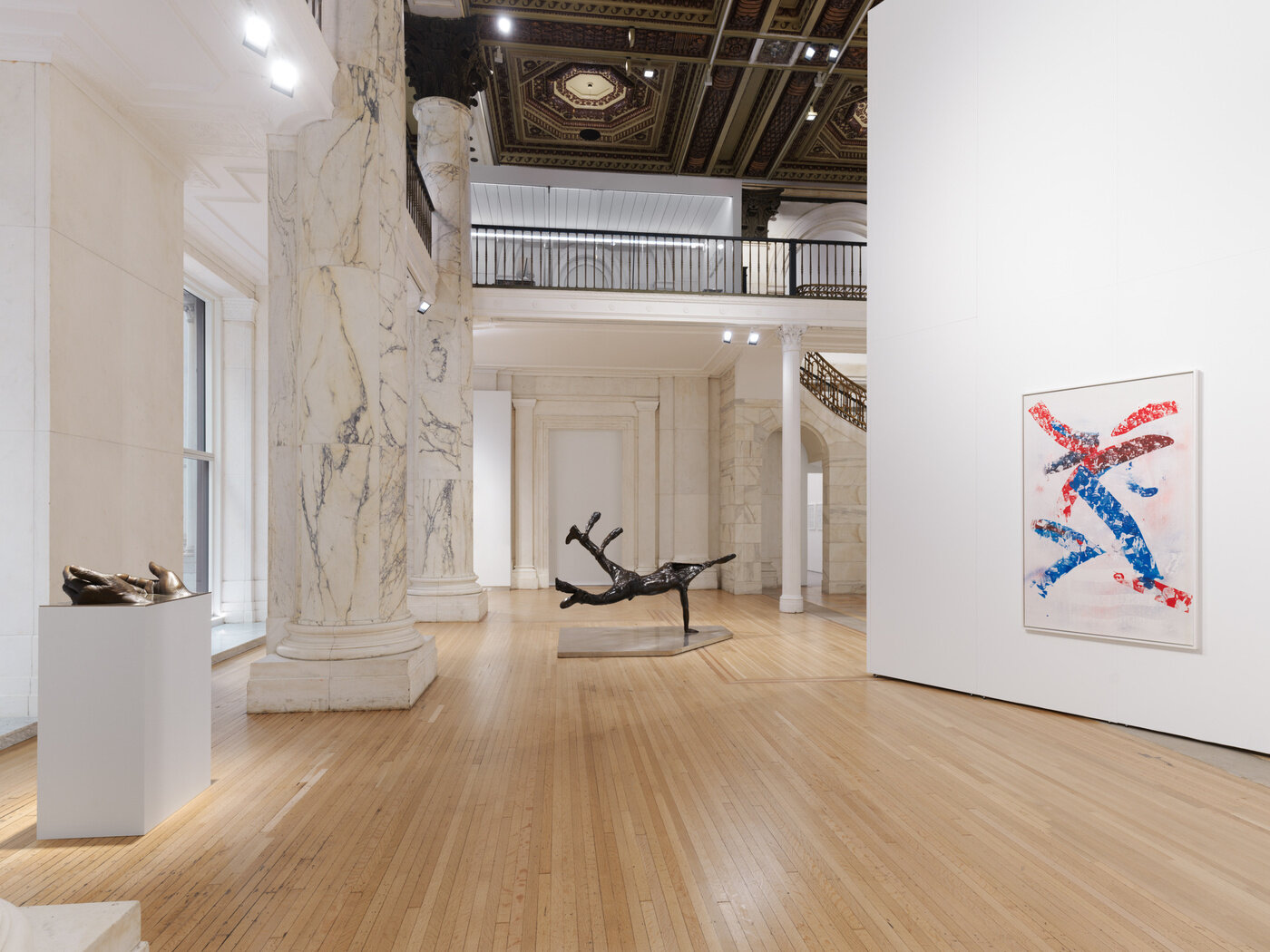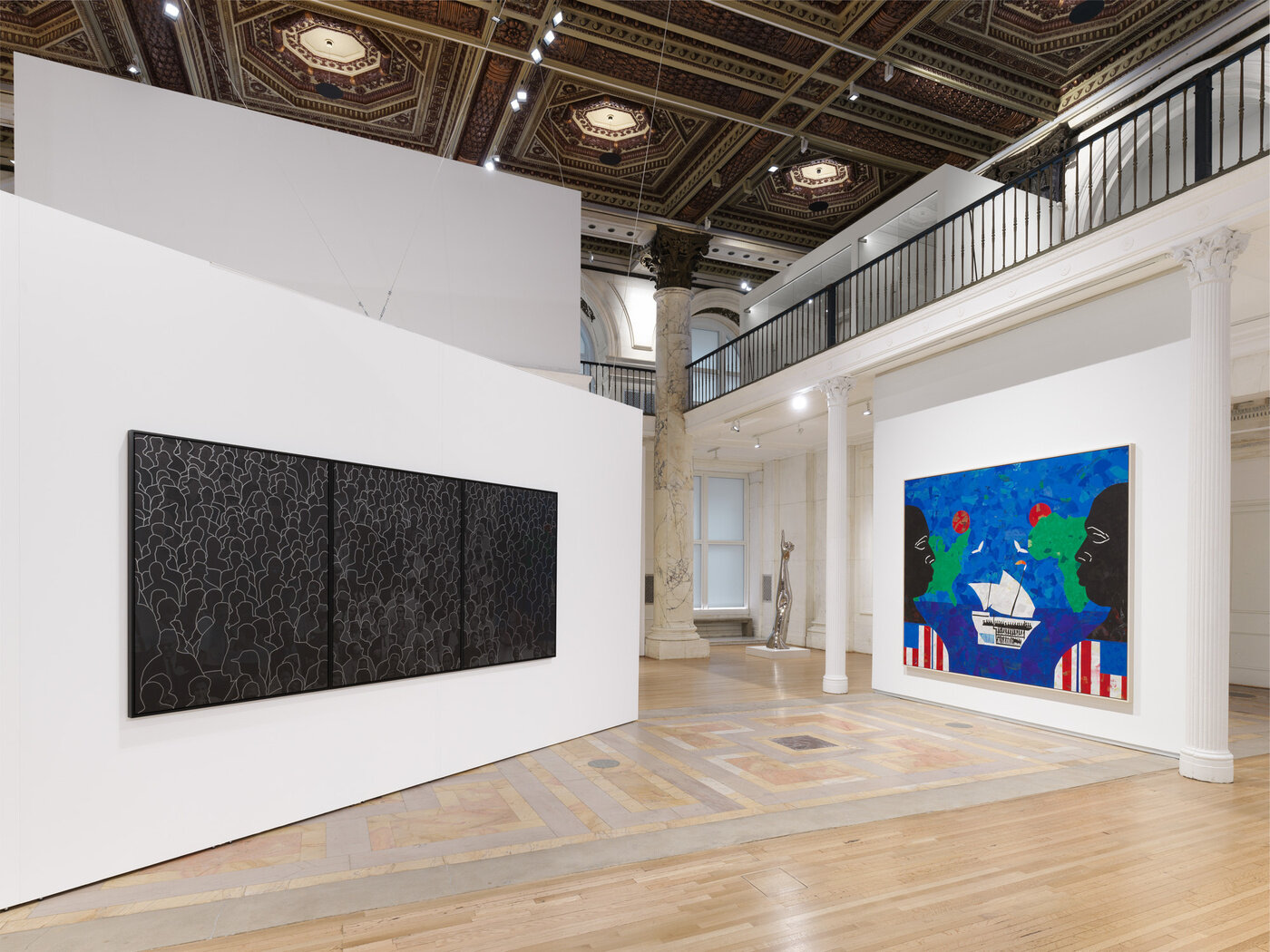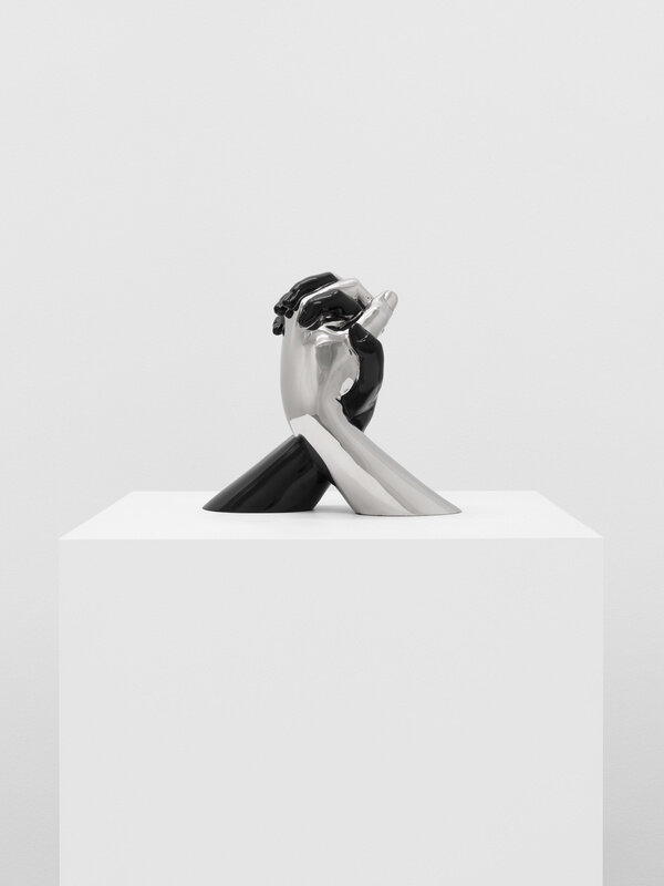 Sculpture continues to be a vital mode of public engagement for Thomas, providing him with opportunities for building community through shared experience. His punctum sculptures take inspiration from Roland Barthes’ photographic theory which describes a detail or passage within an image—the ‘punctum’—that emotionally resonates, sticks with or ‘pierces’ a viewer. Originally sourced from archival photographs, Thomas has begun to use more universal gestures in his newer compositions, as in Community (2024), where isolated hands linking with arms create a circle of power that conveys love, support and connection. In E Pluribus Unum (2020), an eight-foot stainless steel arm points towards the sky with strength while incorporating viewers into its brilliant reflective surface. The nature and scale of these sculptures mirrors their varying iterations in public spaces nationwide while also speaking to Thomas’ longstanding commitment to reconciling the effects of the past on our present moment in history.