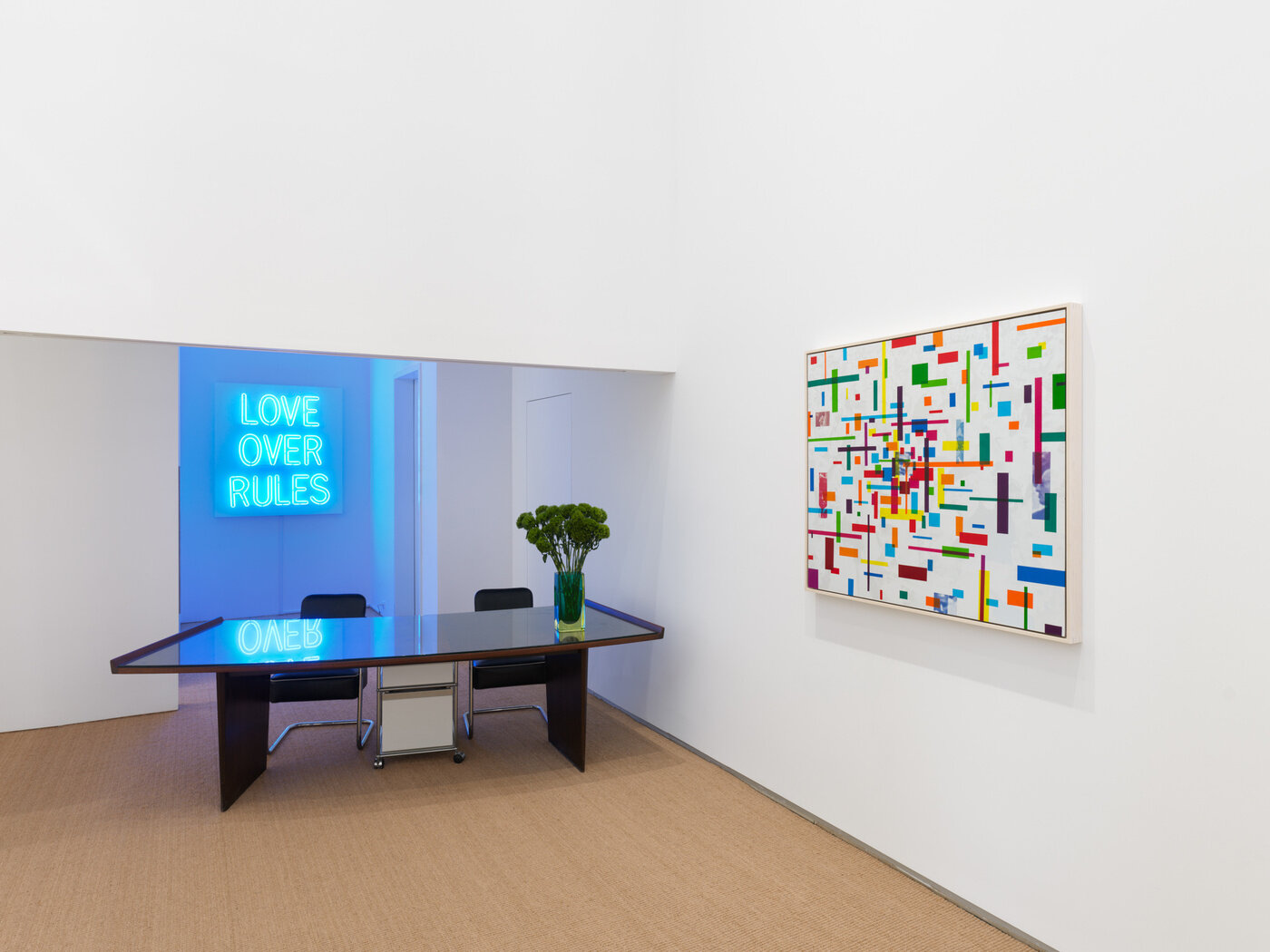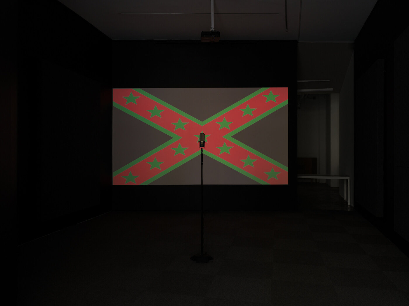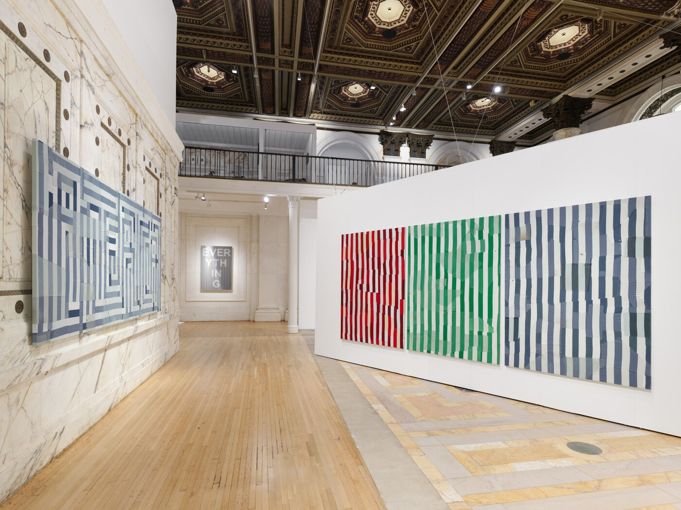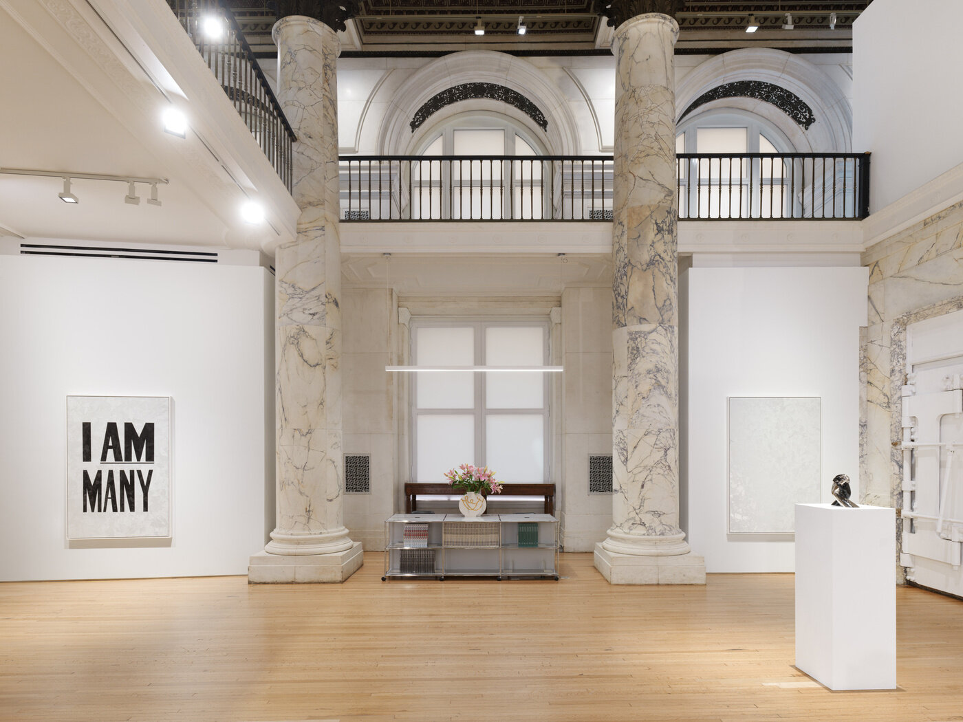 The exhibition takes its title from an eponymous work that references photographs from the 1968 Memphis Sanitation Strike which saw Black men assembled with posters all bearing the same message of ‘I AM A MAN’ and in nearly identical typeface. Thomas has transformed that historic message by creating new iterations that expand out from the original phrase, with retroreflective vinyl that, once activated by direct light, reveals latent, previously hidden images of historic protests. Removed and repositioned from their original context, the crowds underscore the enduring power conveyed by the written word.