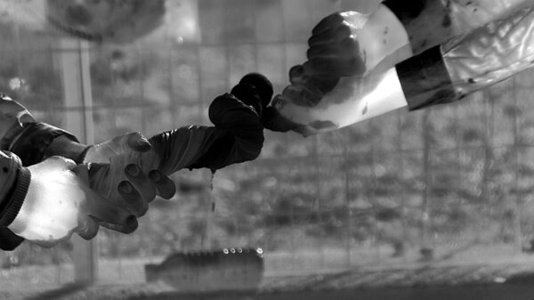 Mosse's latest body of work was made with an advanced new military-grade surveillance camera. Under test conditions, the camera has proved able to detect a human body from 30.3 kilometers. The camera is produced by a multinational defense and security corporation that manufacturers cruise missiles, drones, and other technologies. Primarily designed for surveillance, it can also be connected to weapons systems to track and target the enemy. The camera dehumanizes its subject, portraying refugees – whose statelessness has stripped them of essential human rights – as a mere biological trace, evoking Giorgio Agamben’s concept of ‘bare life’. Mosse's ambitious new project meditates on the struggle and condition of refugees through ideas of hypothermia, warmth, epidemic, climate change, weapons targeting, border surveillance and mortality.