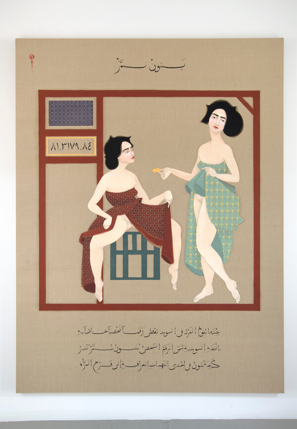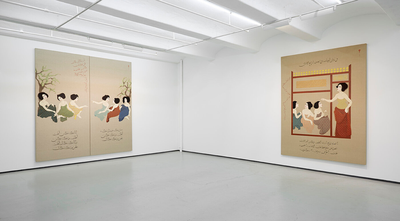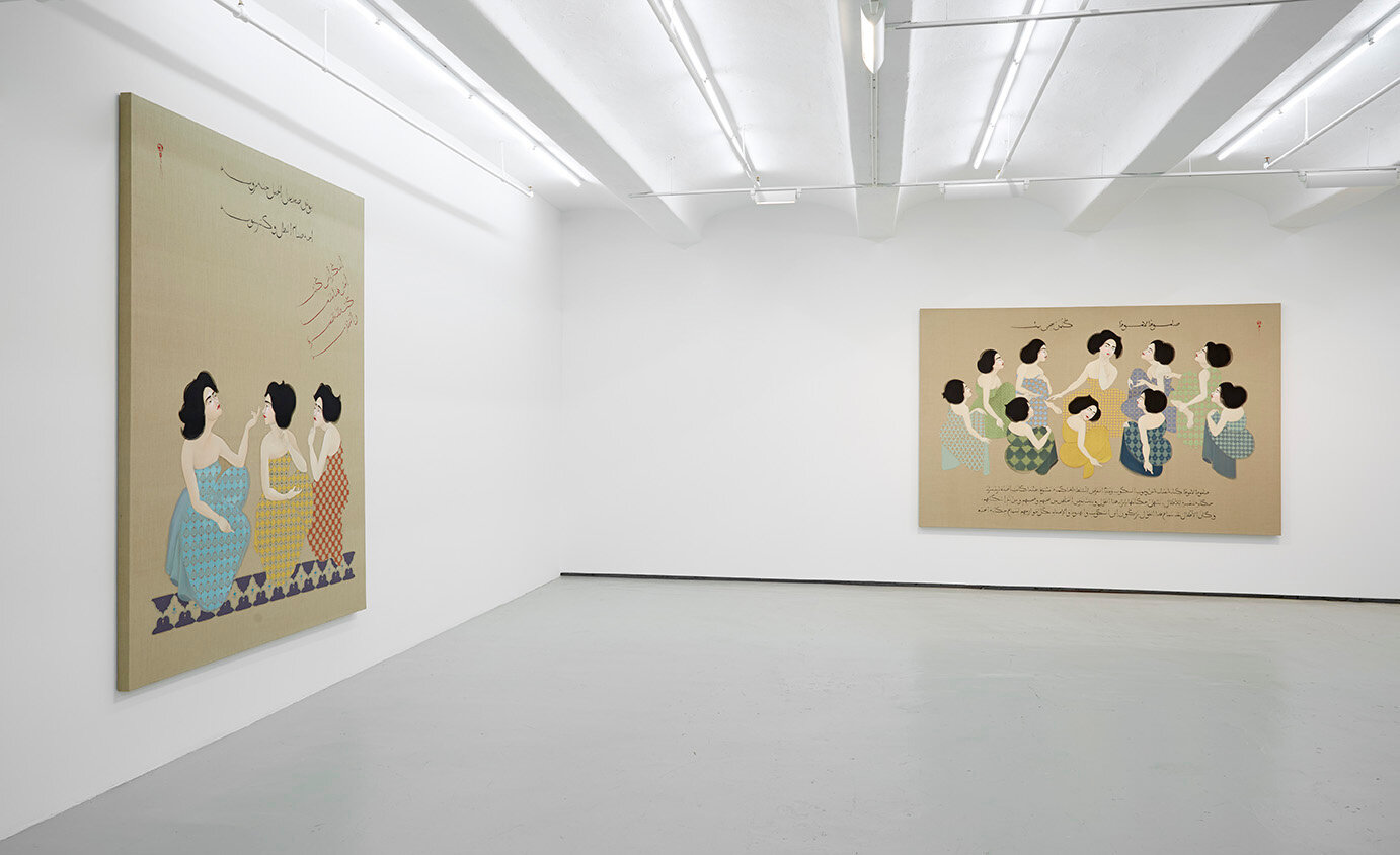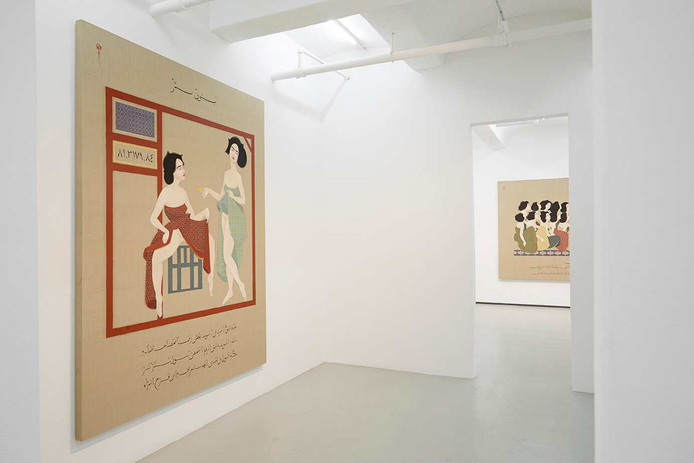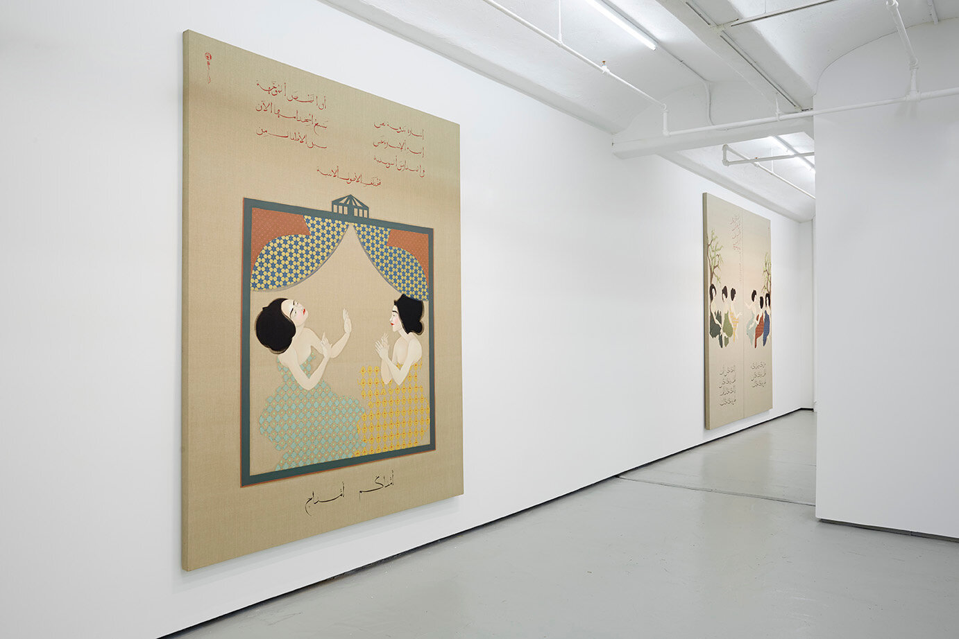 Jack Shainman Gallery is pleased to announce Hayv Kahraman’s second solo exhibition at our 20th Street space, How Iraqi Are You? The exhibition includes large-scale paintings on linen based aesthetically on 12th century Iraqi manuscripts illustrating personal memories from Kahraman’s childhood in Baghdad and as a refugee in Sweden. The following is an excerpt from a text written by curator Octavio Zaya on the occasion of this exhibition: