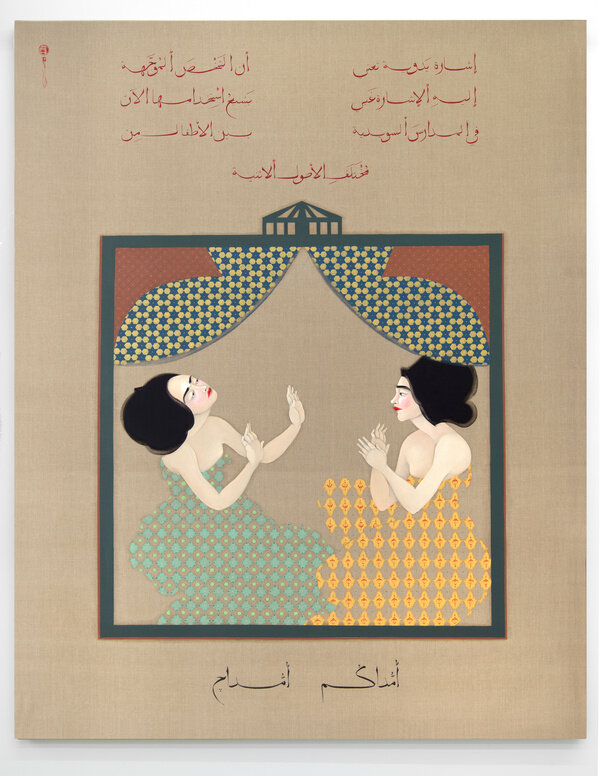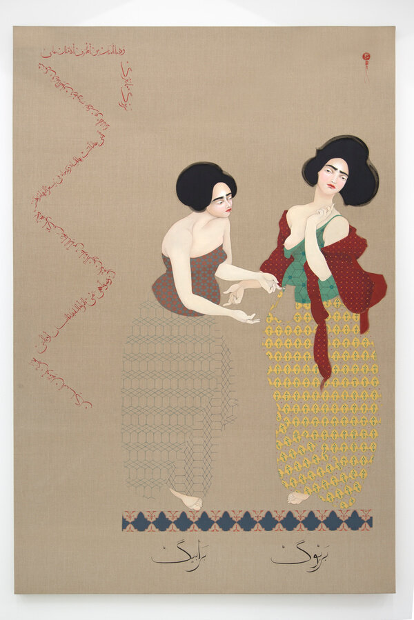Hayv Kahraman, born in Baghdad, Iraq, currently lives and works in San Francisco. She has participated in worldwide exhibitions including Piece by Piece: Building a Collection, Selections from the Christy & Bill Gautreaux Collection, Kemper Museum of Contemporary Art, Kansas City; Echoes: Islamic Art and Contemporary Artists, Nelson-Atkins Museum, Kansas City; The Jameel Prize 2011 – Shortlist Exhibition, Victoria and Albert Museum, London which traveled to venues including the Museum of Fine Arts, Houston and the Cantor Center, Stanford University; and Fertile Crescent, Paul Robeson Center for the Arts, Princeton. Her work is included in several public collections like the North Carolina Museum of Art, Raleigh; the Pizzuti Collection, Columbus; American Embassy, Baghdad; The Barjeel Art Foundation, Sharjah; MATHAF Museum of Modern Art, Doha; and The Rubell Family Collection, Miami.