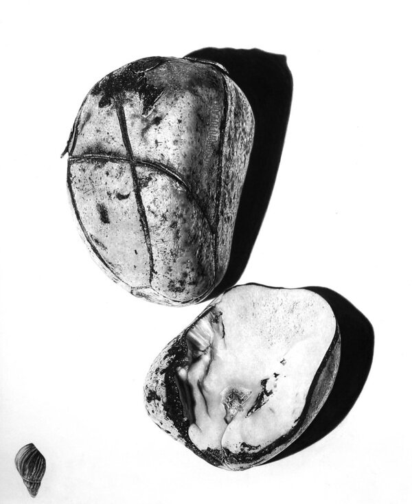 Chiamonwu’s remarkable skill is entirely self-taught. Though she studied Education in college, a longstanding fascination with art since her youth led her to devote innumerable hours to developing the meticulous technique she uses today. The verisimilitude is striking, so much so that the subjects seem to exit the picture plane and enter our world as near-tangible figures imbued with warmth and life. The discipline and effort evident in each drawing and painting ultimately echoes the love and respect she has for each figure in her own life. In this way, Genesis is not only a preservation of Chiamonwu’s Igbo culture, but also a tribute to personal relationships and the unique history one has with those around them.