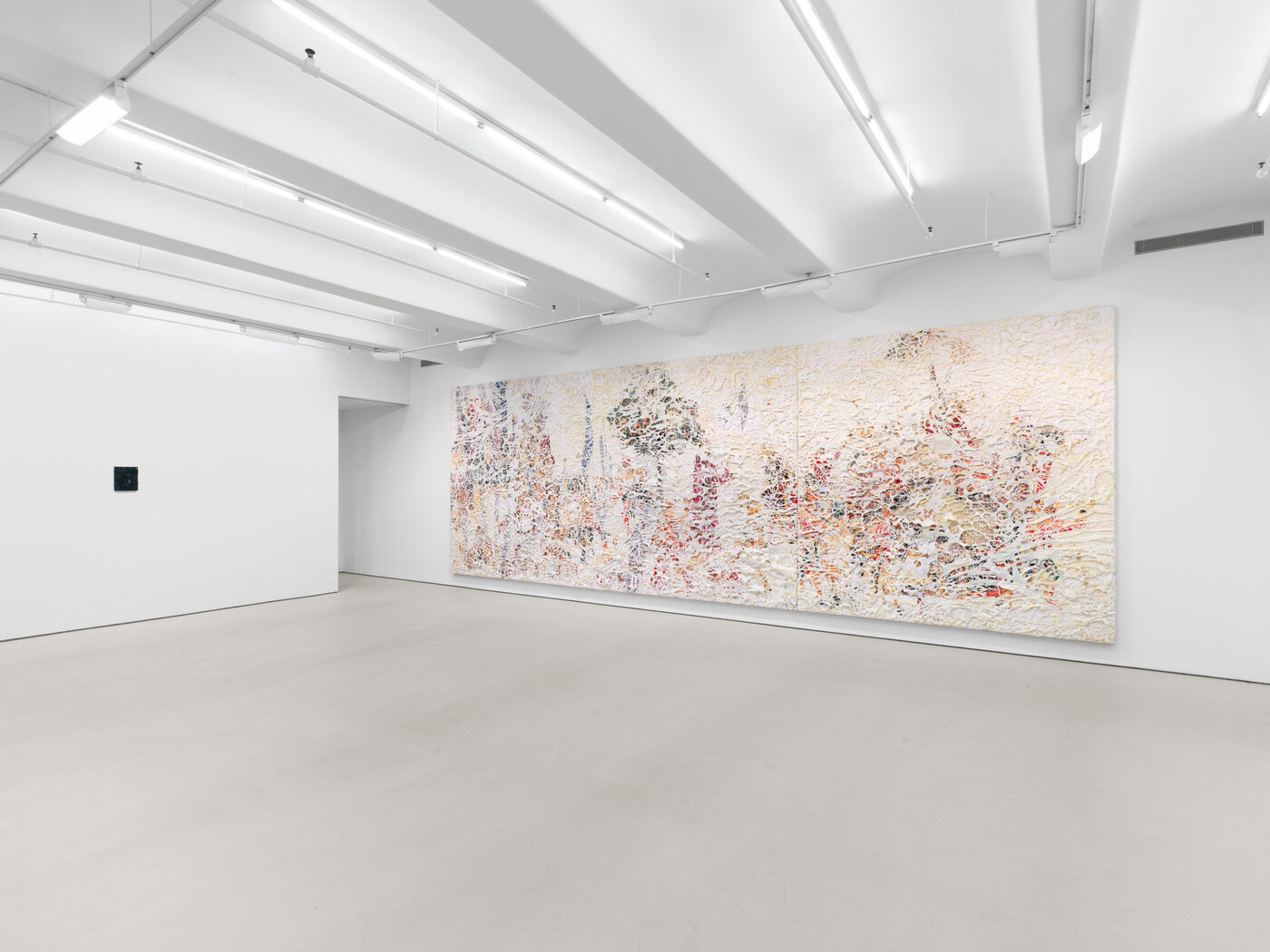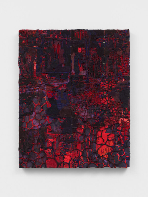 Jack Shainman Gallery is pleased to present Cells, a new body of work by Jesse Krimes, marking his first exhibition with the gallery since his representation was announced in 2023. This exhibition will feature Krimes' latest series of abstract textile works and sculptures, exploring themes of confinement, control and resistance through a combination of image transfer, innovative embroidery techniques and repurposed materials. In Cells, Krimes appropriates art historical depictions of caging and the confinement of animals to examine broader social forces that seek to control and punish. The exhibition includes a series of large-scale abstract textile works that combine transferred images from canonical paintings with complex layers of embroidery drawn directly from microscopic images of cancerous cells. Krimes' process of removing diseased cells from these images to reveal only healthy tissue serves as a metaphor for resilience, transformation and the potential for redemption, even within systems of oppression. His works offer a radical reimagining of punitive structures, illustrating how such systems can evolve into frameworks of care and liberation.