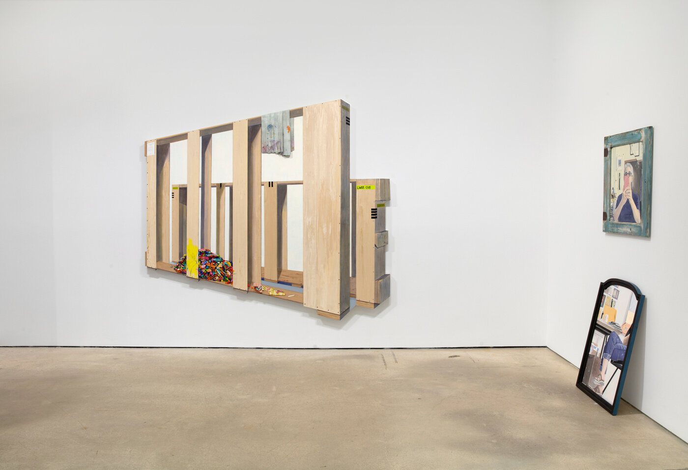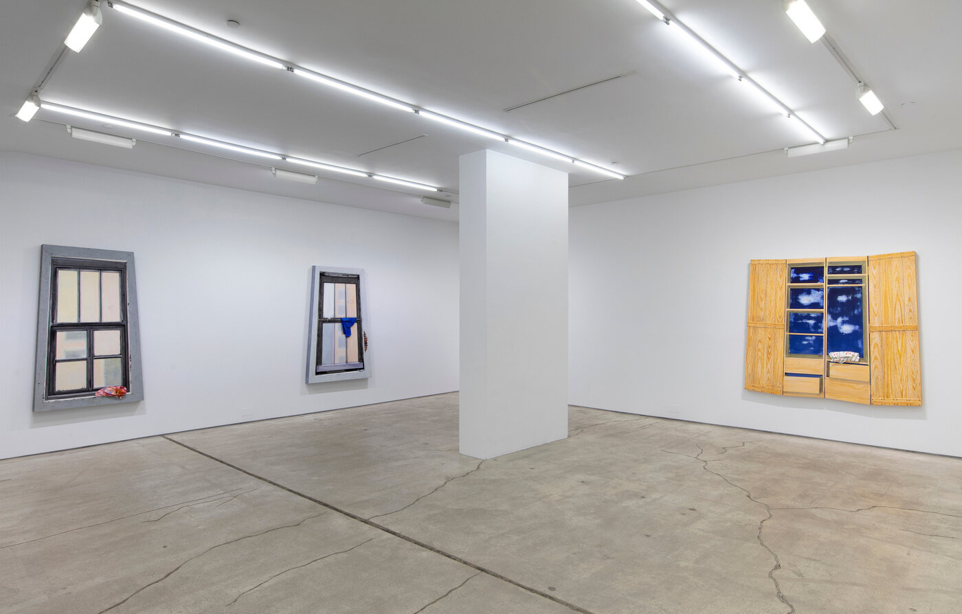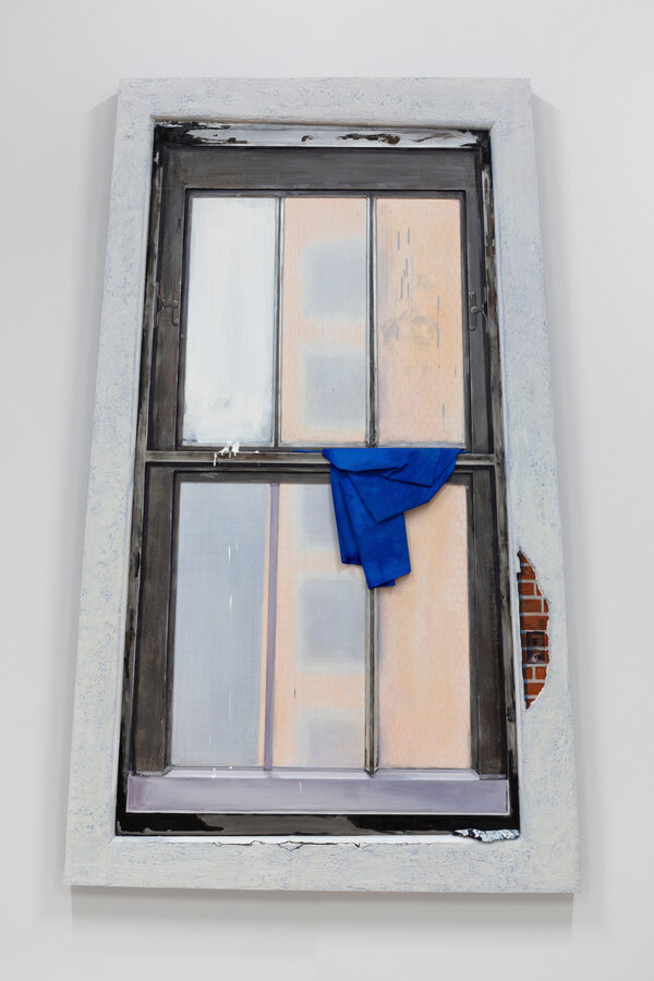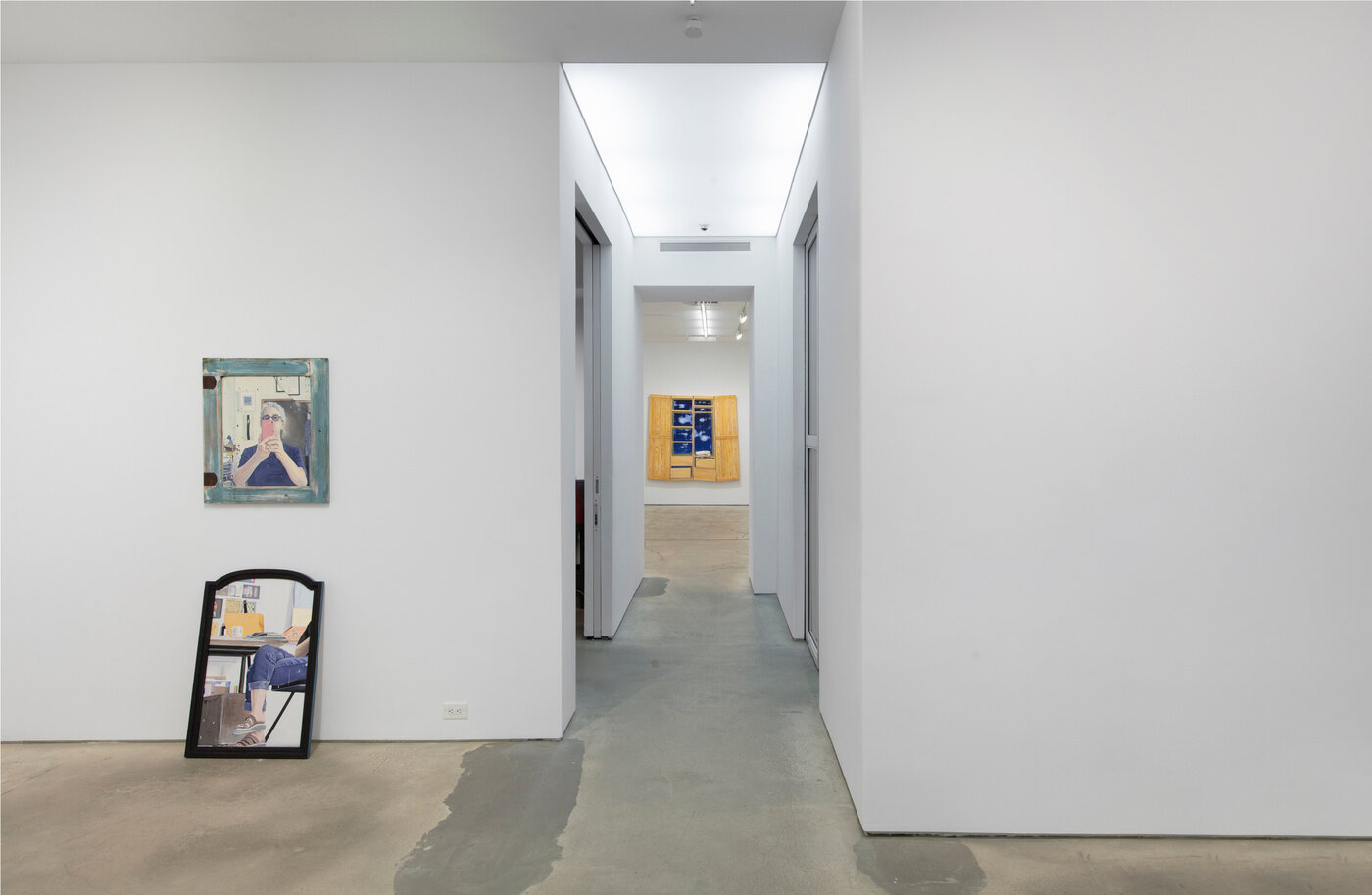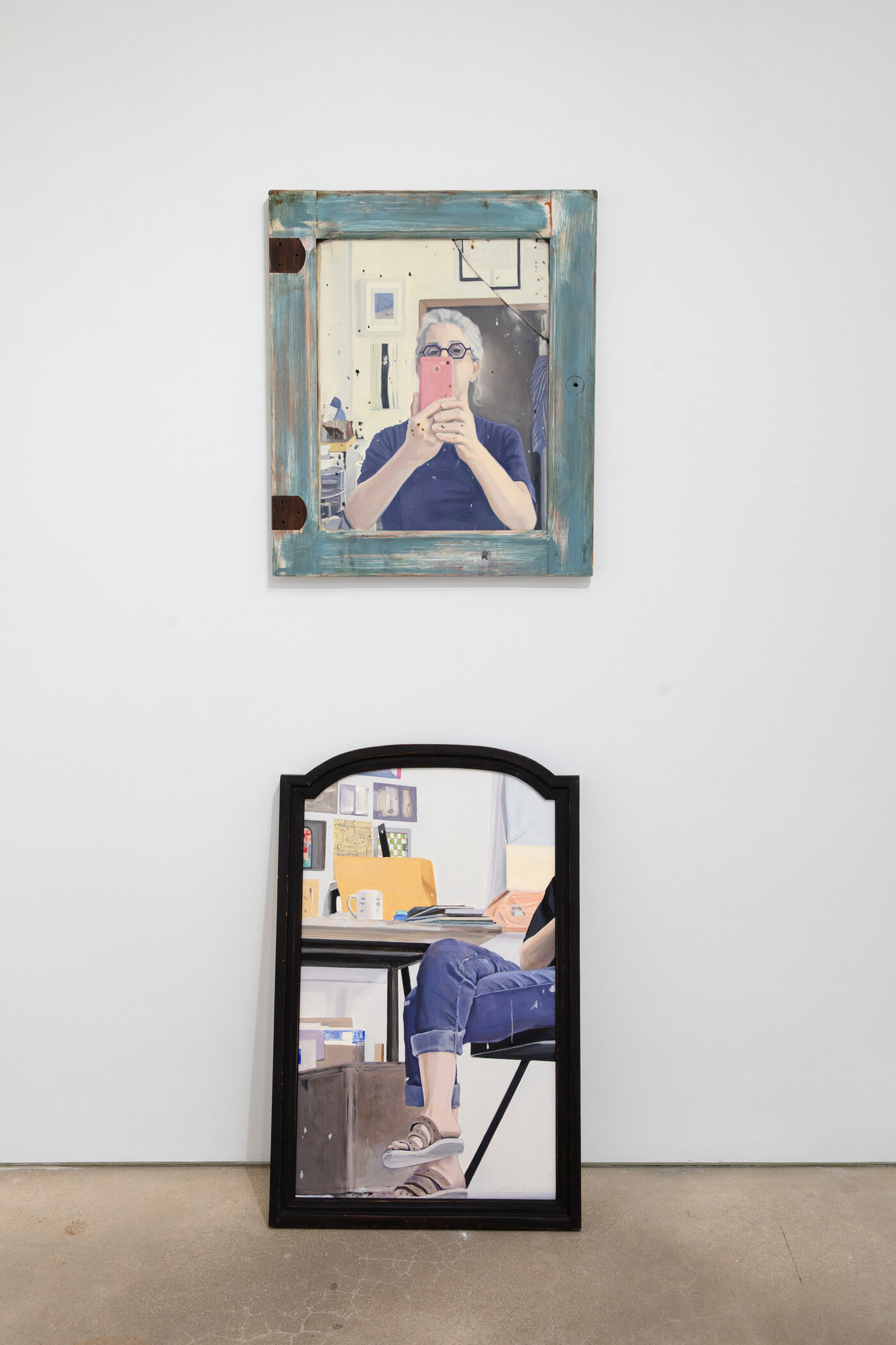 Grounded in play between trompe l’oeil and verisimilitude, her pieces hover between abstraction and representation as the shape of each painting takes on the contours of the objects they represent. From utilitarian worktables and loft windows in disrepair to personal medicine cabinets and cracked mirrors, each object stands witness to and reflects on the artist’s intimate, daily life and state of mind.