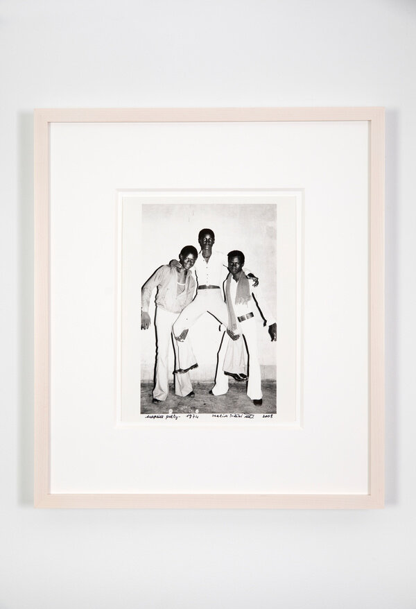 Sidibé’s work has held deep influence throughout the art historical canon, evidenced by a series of 2014 portraits of Chris Ofili, commissioned by The New Yorker and on view for the first time in this exhibition. Ofili has long been inspired by Sidibé’s work, particularly by Nuit de Nöel (1963), which has appeared in seven of Ofili’s paintings, multiple works on paper, and as a sculptural frieze carved into Ofili’s home. The tender moment of 1960s Bamako, Mali, in which a previously suppressed African personality burst into independence and joined a worldwide conversation, finds continued vitality through Sidibé’s legacy.
