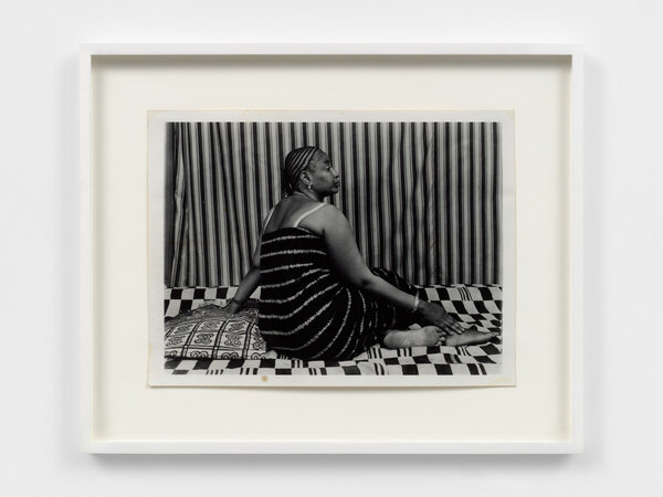 Regardez-moi underscores Sidibé’s role as a pioneer who sculpted the visual identity of the African diaspora, offering a window into a Malian nation that boldly joined a global youth movement. His photographs transcend their historical context, speaking to contemporary dialogues about identity, agency, and the power of being seen. Sidibé’s photographs don’t just freeze time, they transform these scenes into vibrant stages where his subjects — young couples excited to be married, or older men or women reclaiming their freedom of expression — assert their presence and identity. In Dansez le Twist (1963-2010), Sidibé captures a young man and a woman in a state of joy while dancing the twist, an American rock ‘n’ roll dance that became a global cultural phenomenon from 1959 to the early 1960s, which was known for its simple yet lively steps that encouraged freedom of movement and expression. By providing his subjects with ways to be seen and celebrated, Sidibé’s lens offers a powerful counterpoint to our tech-filtered world, reminding viewers of the raw, unscripted joy of human connection. One of Sidibé most celebrated series, Vues de Dos — with examples from the series held in the collections of numerous museums such as the Getty Museum, The National Gallery of Art, as well as the Metropolitan Museum of Art — provides viewers with a deeper understanding of the photographer’s curatorial eye, depicting women in his studio with their bare backs to the camera against a signature backdrop of striped walls. Sidibé’s photography serves as both a reflector and a loudspeaker, magnifying the vibrant, intimate essence of Bamako’s people in the wake of gaining independence from French colonial rule. The works capture a liberated people that resonates with a contemporary urgency now more than ever.