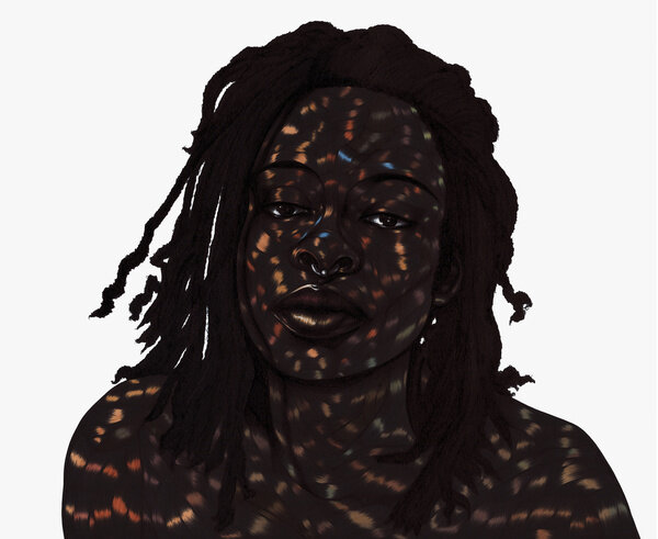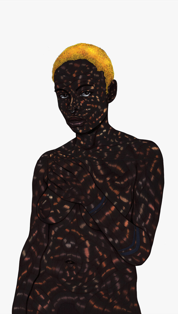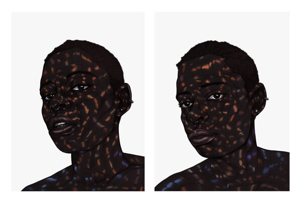 Jack Shainman Gallery Her pen markings, dense and engraved, either stand alone or cover kaleidoscopic color fields that emanate from within. The acute depictions of skin and hair both portray the figure, often Odutola, as well as reference scientific renderings of subdermal muscular structures. While concerned with the historical representation of the black subject in modern and contemporary portraiture, Odutola’s focus shifts to the transcendence of skin (color) and placement (origin), opening a field for the viewer to place themselves in the work; finding spaces to belong or to reject, to possess, to implant one’s self or to find freedom from the rejection of that space.