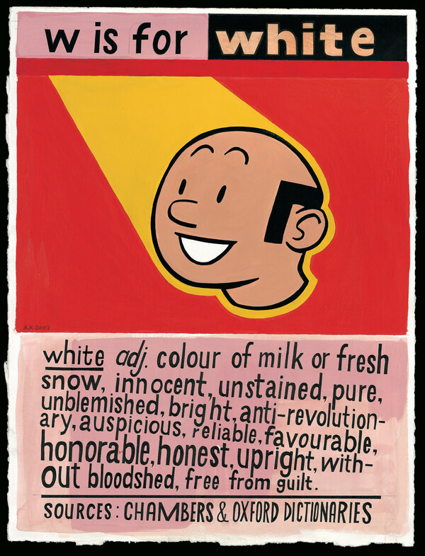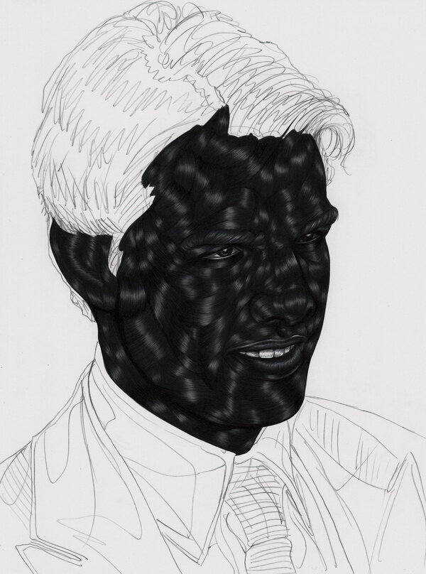 Jack Shainman Gallery is pleased to present Orientation, in conjunction with The Racial Imaginary Institute (TRII) as part of their inaugural TRII Biennial. Expanding upon the Institute’s first year of research on Whiteness, what Claudia Rankine has described as “a source of unquestioned power [that], as a ‘bloc,’ feels itself to be endangered even as it retains its hold on power,” the exhibition at Jack Shainman Gallery will include work by Sam Durant, Ken Gonzales-Day, Anton Kannemeyer, Byron Kim, Sol LeWitt, Kerry James Marshall, Meleko Mokgosi, Yasumasa Morimura, Gordon Parks, Emily Nelms Perez, Jackie Nickerson, Toyin Ojih Odutola, Claudette Schreuders, Richard Serra, Andres Serrano, Becky Suss, Tim Rollins and K.O.S., and Carrie Mae Weems. The Racial Imaginary Institute Biennial seeks to disorient bodies habituated to spaces of white dominance by creating a collaborative space to check, mark, and ultimately question whiteness, challenging its dominance as it operates through default positions in cultural behavior.