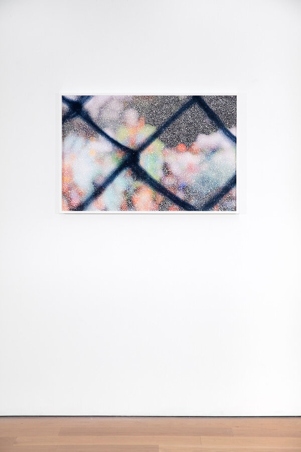 Jack Shainman Gallery is pleased to present Parking on Pavement at The School. Questioning the illogical and irrational nature of seemingly fixed systems, Parking on Pavement reflects the paradoxes and schisms of contemporary life. In a series of picotage on pigment prints by Paul Anthony Smith, the artist examines social structures, borders, and belonging. Smith’s picotage overlays serve as a form of information redaction, obscuring the legibility of images underneath. Stefana McClure’s films on paper, consisting of closed captions of films and television shows overlaid through transfer paper, render seemingly familiar references nearly impossible to interpret. Similarly, Michael Snow’s Sshtoorrty (short story), a film referred to by the artist as a painting, includes images and sounds superimposed and looped upon themselves. The Farsi and English subtitles stacked on top of one another construe language as mere sound, and images become simply a physical sight. The conflation of time, space, and language in each of these works emotes a loss in translation.