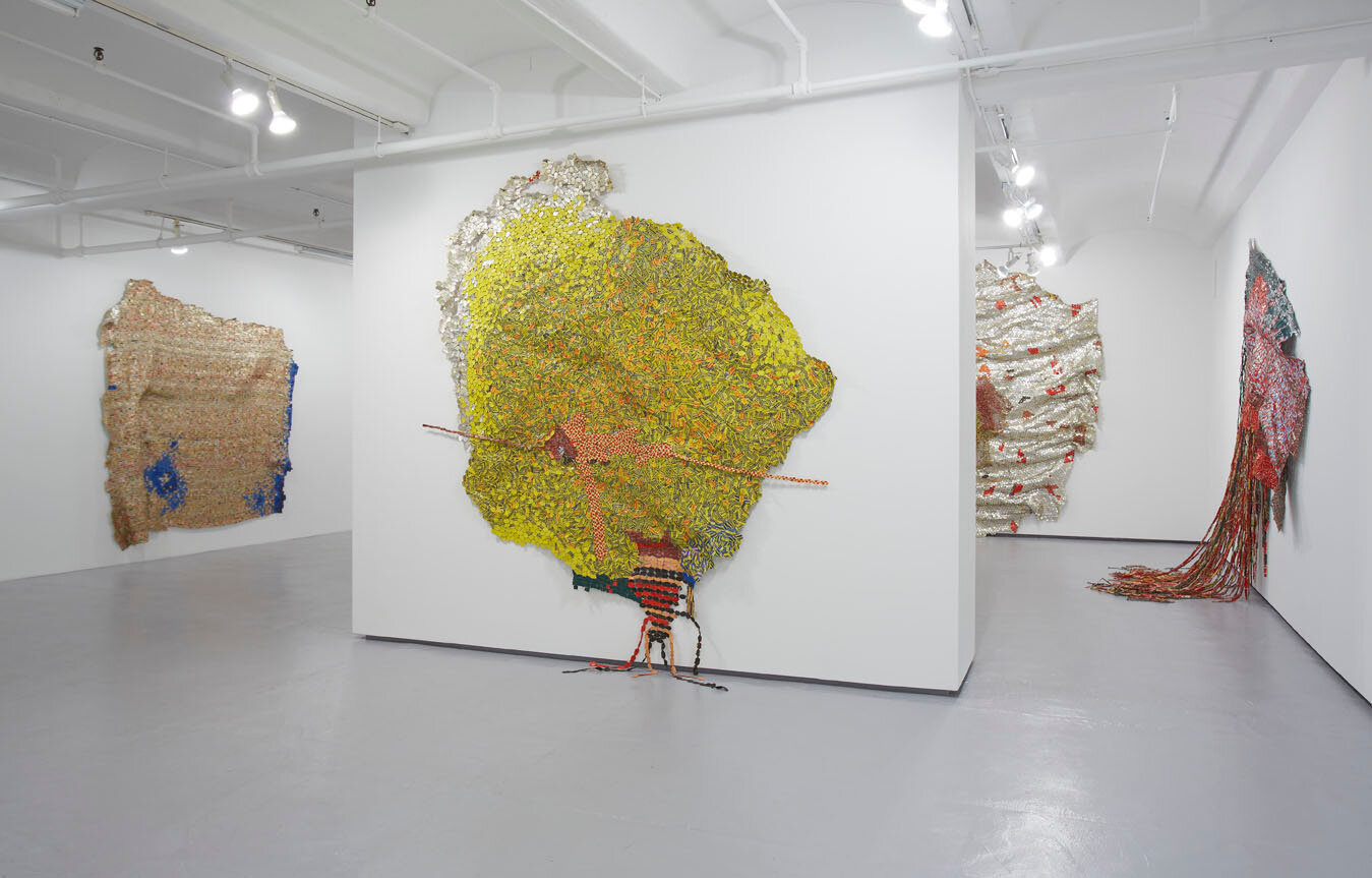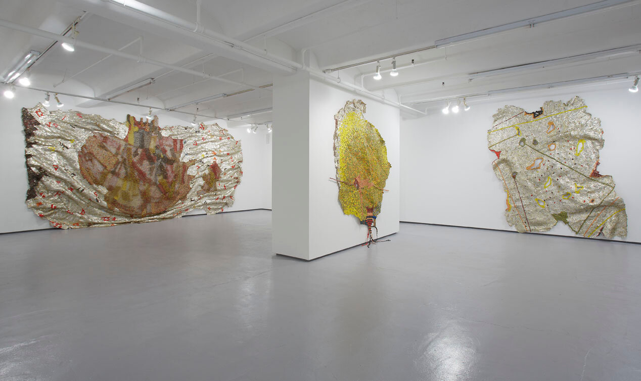 The works in this exhibition are fresh and unexpected while remaining true to the practice Anatsui has mastered over decades, creating sculpture that defies categorization. In doing so, Anatsui has created a lexicon all his own. Every unit becomes a morpheme, folded, shaped and joined together within Anatsui’s visual dialogue with art history, tradition and the future of sculpture.