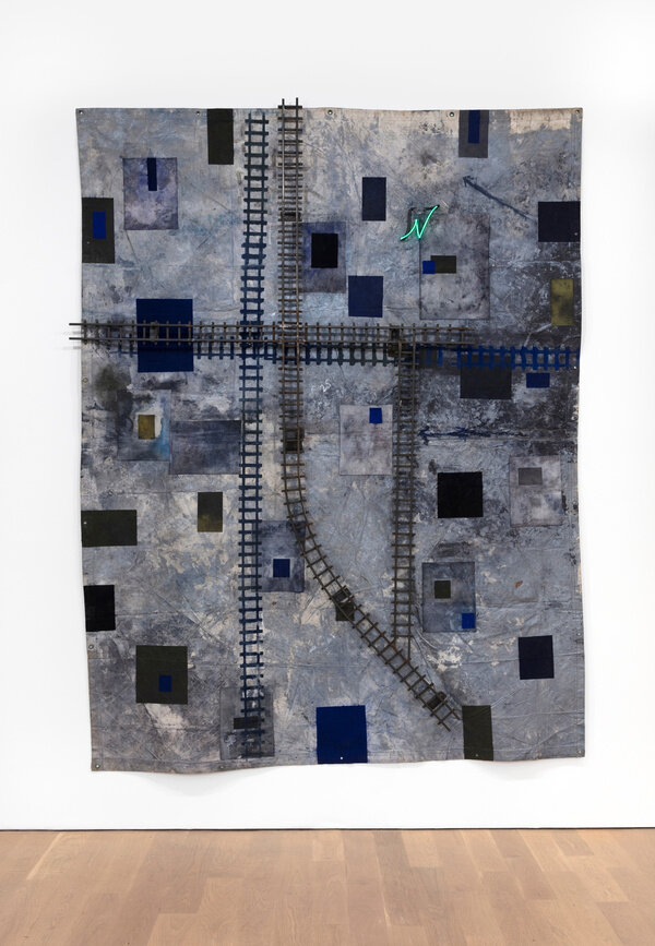 Bailey’s practice can further be seen as a contemporary continuation of the legacy begun by W.E.B. DuBois. Having established the sociology program at Atlanta University in 1897, DuBois originated the study of American sociology as it is known today. As part of his research, DuBois commissioned sixty handmade ink, gouache, and graphite data visualization graphs to bring to life the numbers he was charting, which demonstrated the ways in which Black America was being left by the government to stagnate. These visualizations reflected what DuBois dubbed “a plexus of social problems, some new, some old, some simple, some complex; and these problems have their one bond of unity in the act that they group themselves above those Africans whom two centuries of slave-trading brought into the land.” Referencing DuBois’ imagery and research, Bailey condenses his own reflections on the current state of this country and its people into this new body of work, employing materials with journeys and pasts as foundations on which we may consider our future.