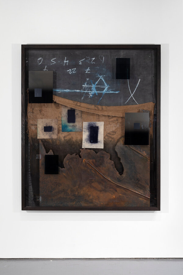 Much of Bailey’s practice revolves around a fascination with the American South, which he views as one large state that carries its own histories and practices. It is a state in which the Black community has poured their own blood, sweat, and tears, only to see a range of promises lie unfulfilled. This is particularly represented in the mixed media cabinet work, Slow Blues, in which Bailey images a slice of the United States that is instantly recognizable, yet simultaneously rendered into an almost abstracted form. Arrows clearly point to specific locations as reminders of the ports of entry for enslaved Africans into this country, while the number “400” is smudged and obstructed. Coupled with the work’s title, these details suggest that in the hundreds of years since the beginning of Middle Passage, the South has been all too slow to transform into a collective blue state that supports the progress of its own constituents.