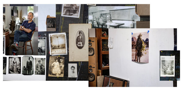 Born 1968 in Bridgeton, New Jersey, Radcliffe Bailey was raised in Atlanta, Georgia, where he lives and works today. Forthcoming public art installations include work commissioned by the City of Atlanta, Georgia, as part of the Renew Atlanta Public Art Program, and the Freedom Cornerstone, commissioned by the City of Greensboro, North Carolina. Recent solo exhibitions include Travelogue at Jack Shainman Gallery | The School, Kinderhook, New York, which will travel to the Knoxville Museum of Art, Tennessee; Pensive, SCAD Museum of Art, Savannah, Georgia, which travelled to the Gibbes Museum of Art, Charleston, South Carolina; Radcliffe Bailey: Recent Works, Contemporary Arts Center, New Orleans, Louisiana; and Memory as Medicine at the High Museum of Art, Atlanta, Georgia. Bailey’s work is included in the collections of the Metropolitan Museum of Art, New York; the Smithsonian Institution, Washington, D.C.; the Art Institute of Chicago, Illinois; the Museum of Fine Arts, Houston, Texas; the Nelson-Atkins Museum of Art, Kansas City, Missouri; the Denver Art Museum, Colorado; and the High Museum of Art, Atlanta, Georgia, among many others.