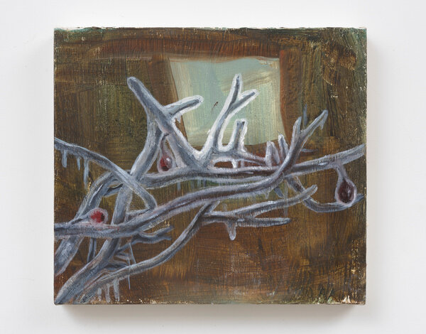 In this sense, the juxtaposition of sometimes disparate references—for example, roses and rebar—evokes a poetic quality, yet resists identification with any specific narrative. Rather, the works refer to their own making and particular emphasis is given to the canvas’ surface and the physicality of paint; borders are left undefined, pigment smeared. Martínez Celaya, describing the ineffable quality of his work, stresses presence over referent: “The conviction of the scenes is put in question by the way the paint doesn’t reach the edges. This quality of the edges also problematizes the ‘framing’ of the world suggested by the paintings—my paintings are not windows to a world but all that there is.”