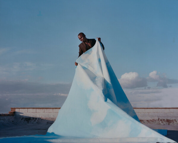 I Can Make You Feel Good, at our 24th Street gallery is an expansion of the body of work shown in Mitchell’s solo exhibition of the same name at Foam Fotografiemuseum, Amsterdam (2019) and the International Center of Photography, New York (2020). The works included in this latest iteration, exhibited publicly for the first time, continue Mitchell’s Edenic exploration of situating a Black utopia in the everyday. The large format print, Time for a New Sky, shows a young man on a rooftop gently lifting a large fabric upward, blanketing the sky. For Mitchell, the image is a representation of self-possession and Mitchell’s belief in radical optimism: the figure has the sky in his hands, he can shape new horizons.