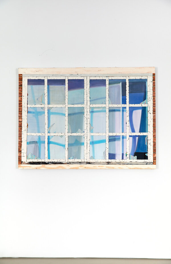 In the creation of this series, Wayne relied on process over planning. Her driving impetus often stemmed from the result of something unanticipated – an encounter with another work of art, a technical “mistake” in the studio, a word or passage in a book, or a deeply personal event – rather than a deliberate blueprint for a specific outcome. These new paintings allow space for all those moments to coalesce into a body of work that looks both outward to the world and towards Wayne’s inner life. Wayne reflects, “Though these paintings represent my political anxiety, I am also not a bleak person by nature. So for me, the idea of a broken window is also an invitation for some sort of renewal. A window can be fixed, new histories can be made.”