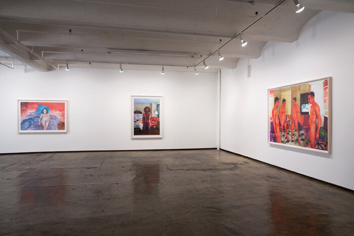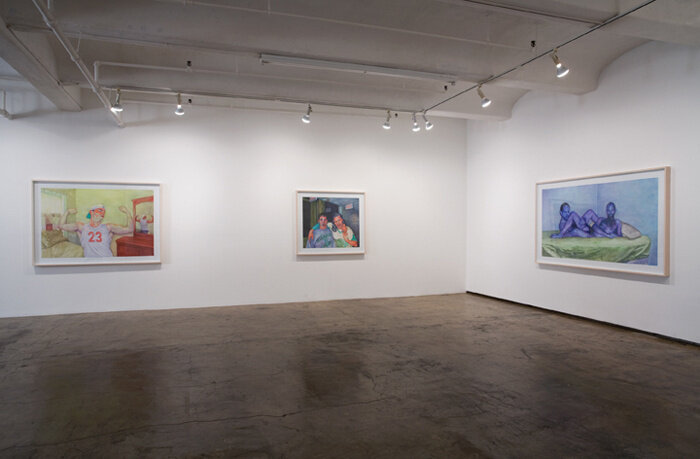 Chadsey’s characters and resulting tableaus are hybrids between stereotypically incongruent worlds: drunken college dudes, preening boys, parents, gay men, the anonymous morphed with celebrity culture, the cartoonish, the prurient and the vulnerable…“It's a drunk miscegenating queer world, filled with hostile effeminacy, macho posturing and preening, celebration, pleasure, and alienation-- a world that is born from a break in belonging.”
